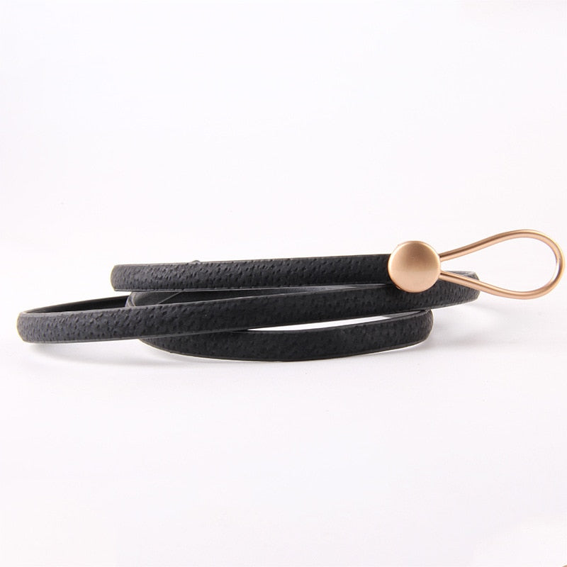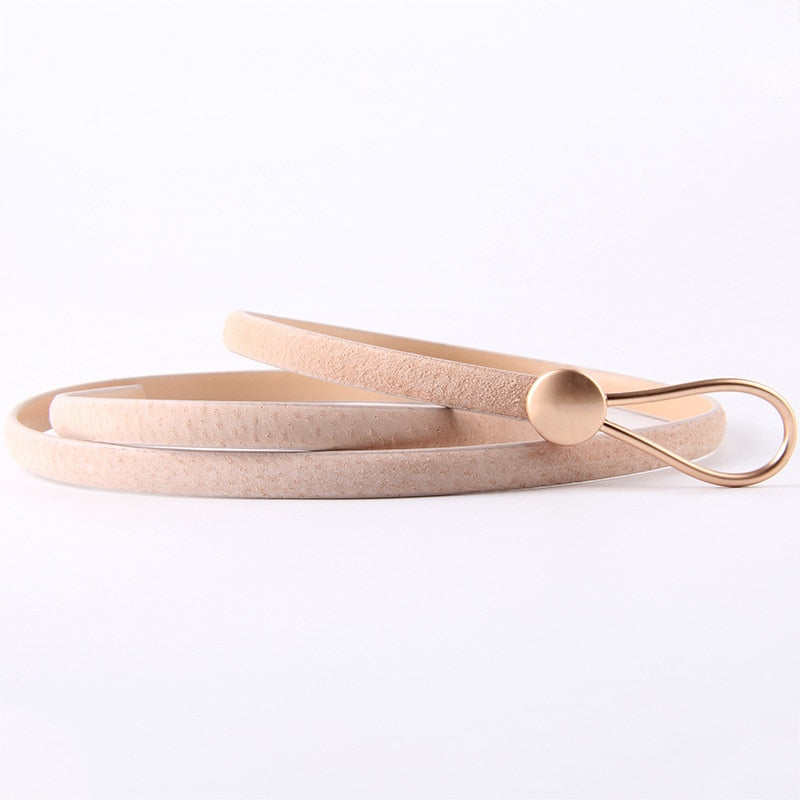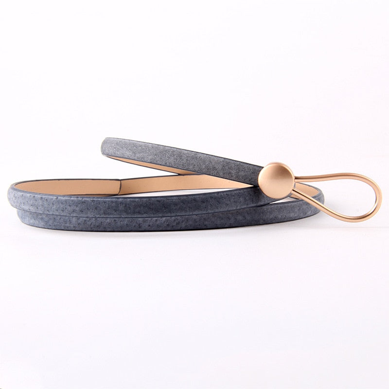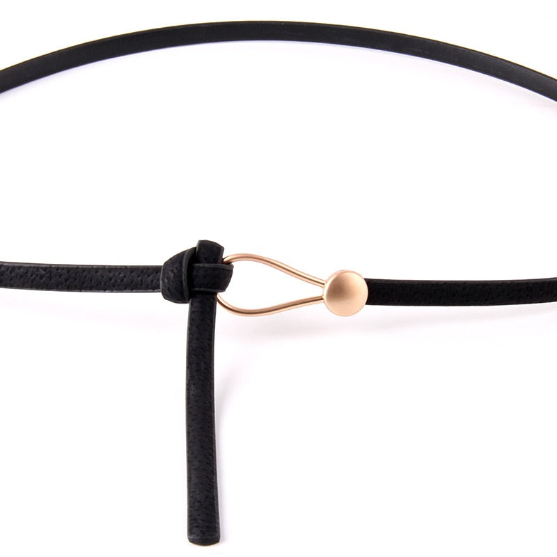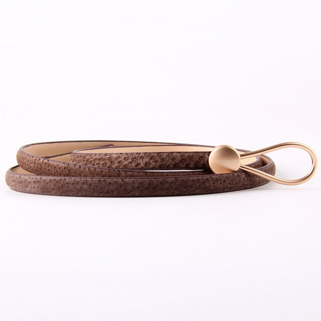 Knot Style Genuine Pigskin Leather Belt with Metal Loop Buckle