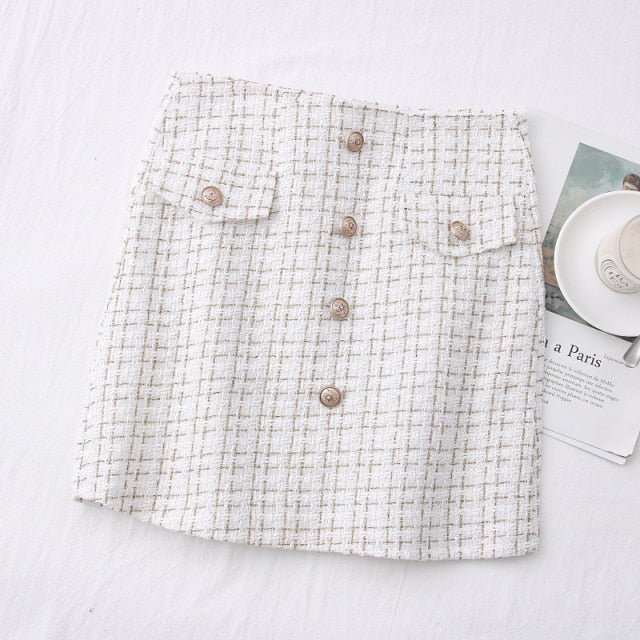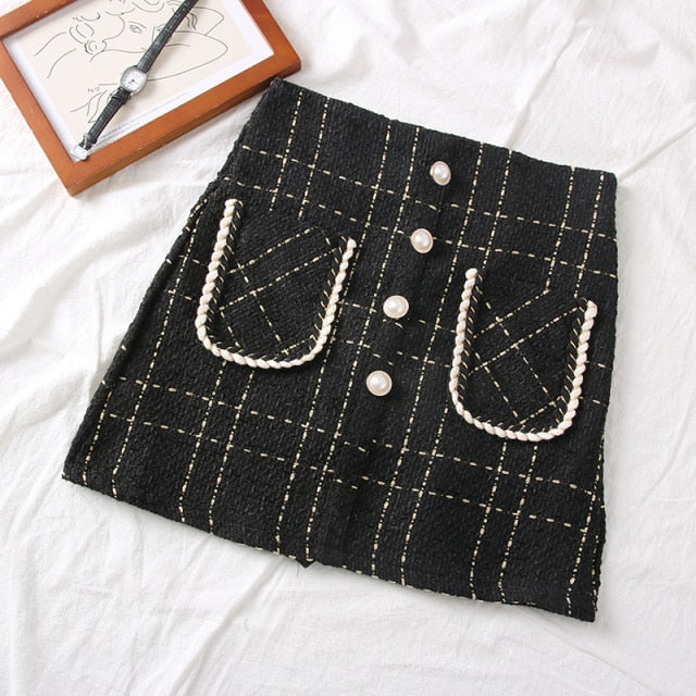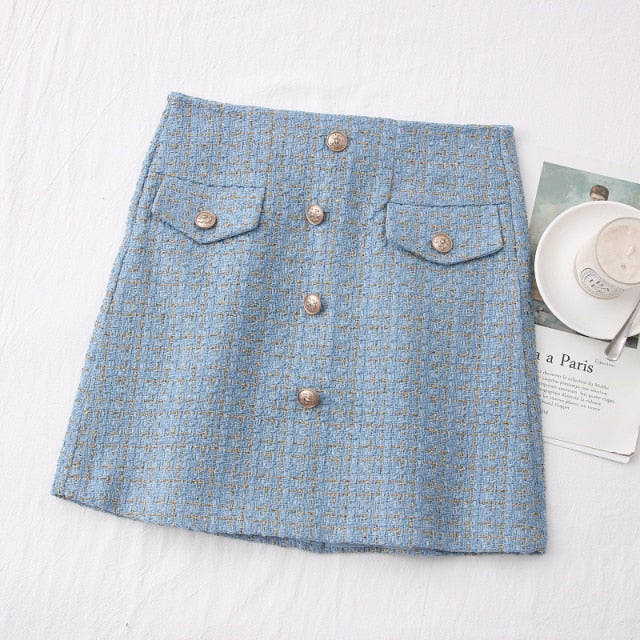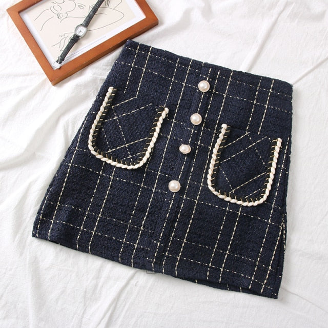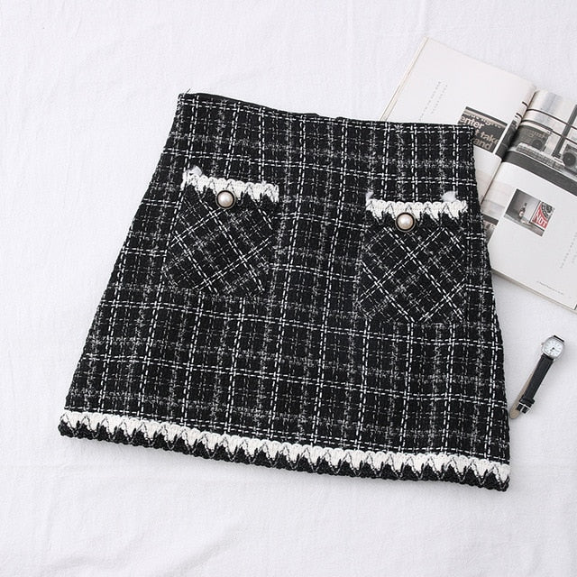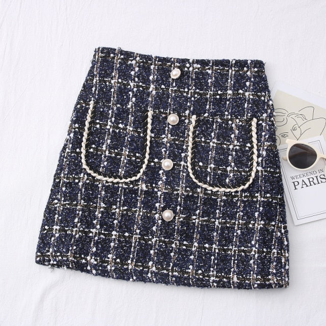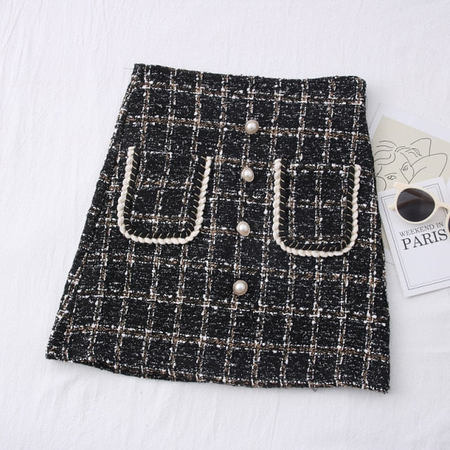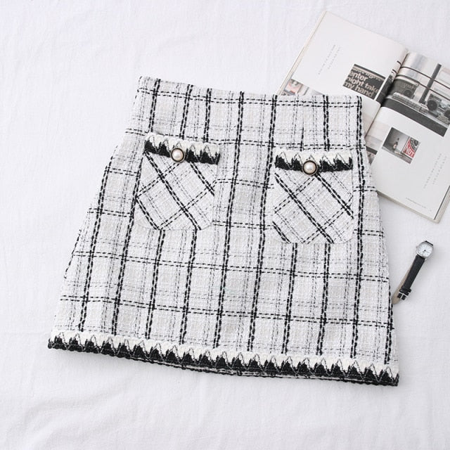 Subtle Plaid Pattern Straight Mini Dress with Pocket Decoration and Cotton Material