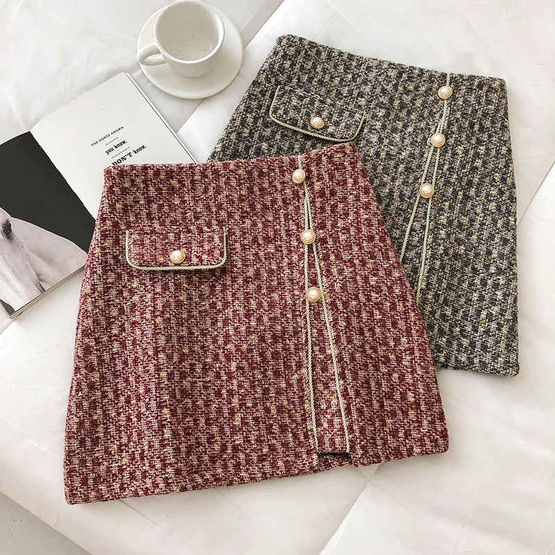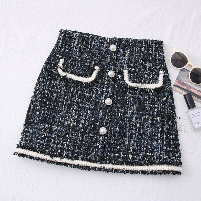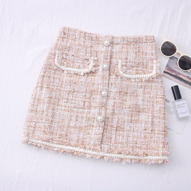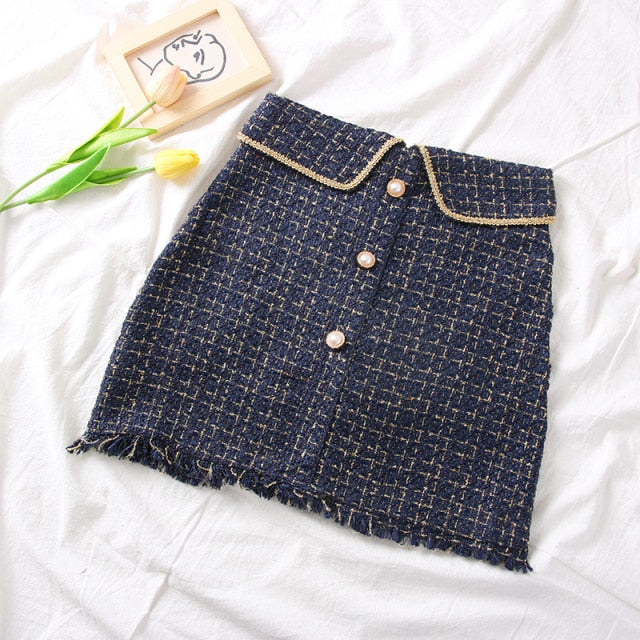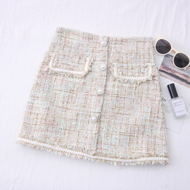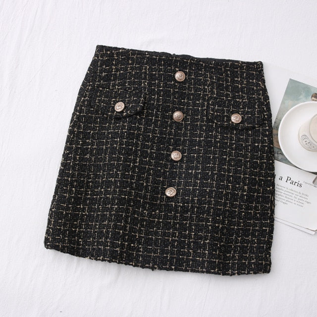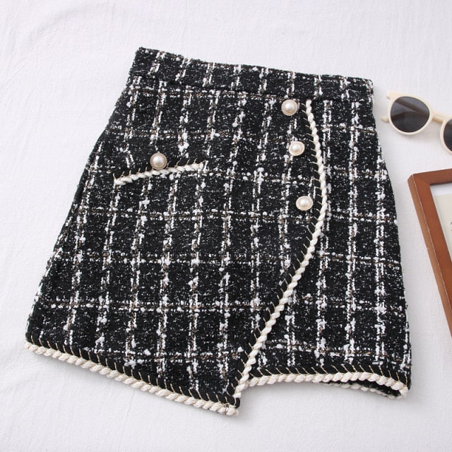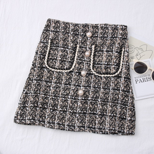 Subtle Plaid Pattern Straight Mini Dress with Pocket Decoration and Cotton Material