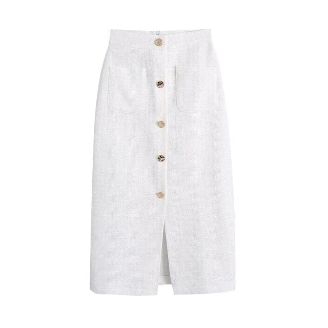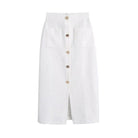 Solid Polyester Woven Midi Dress with Button Decoration and Zipper Closure