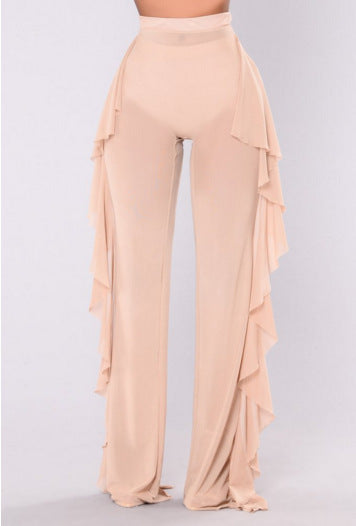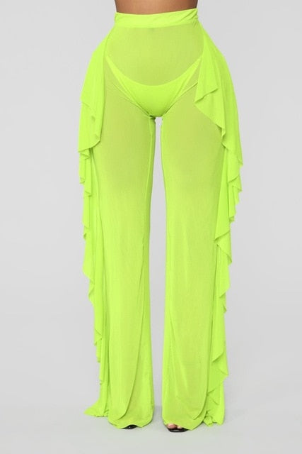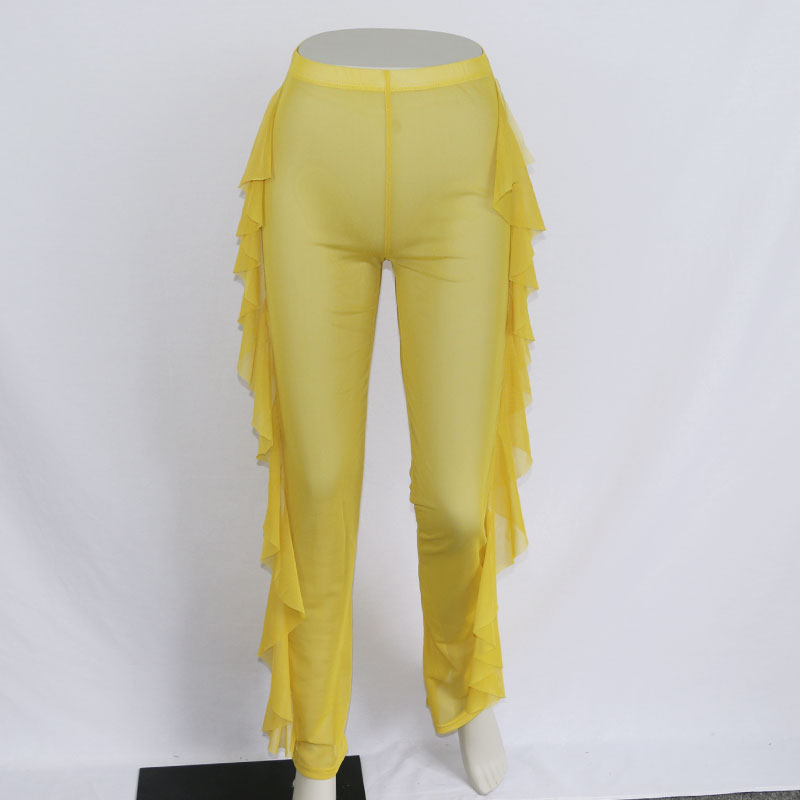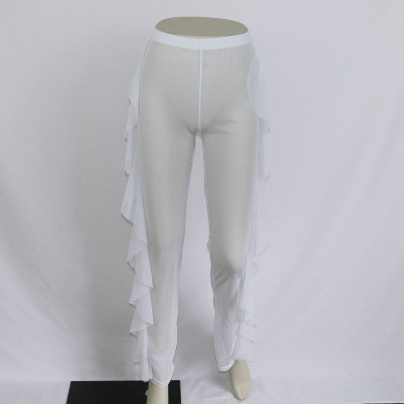 Mesh Polyester Spandex Solid Patterned Loose Ruffled See Through Pants
