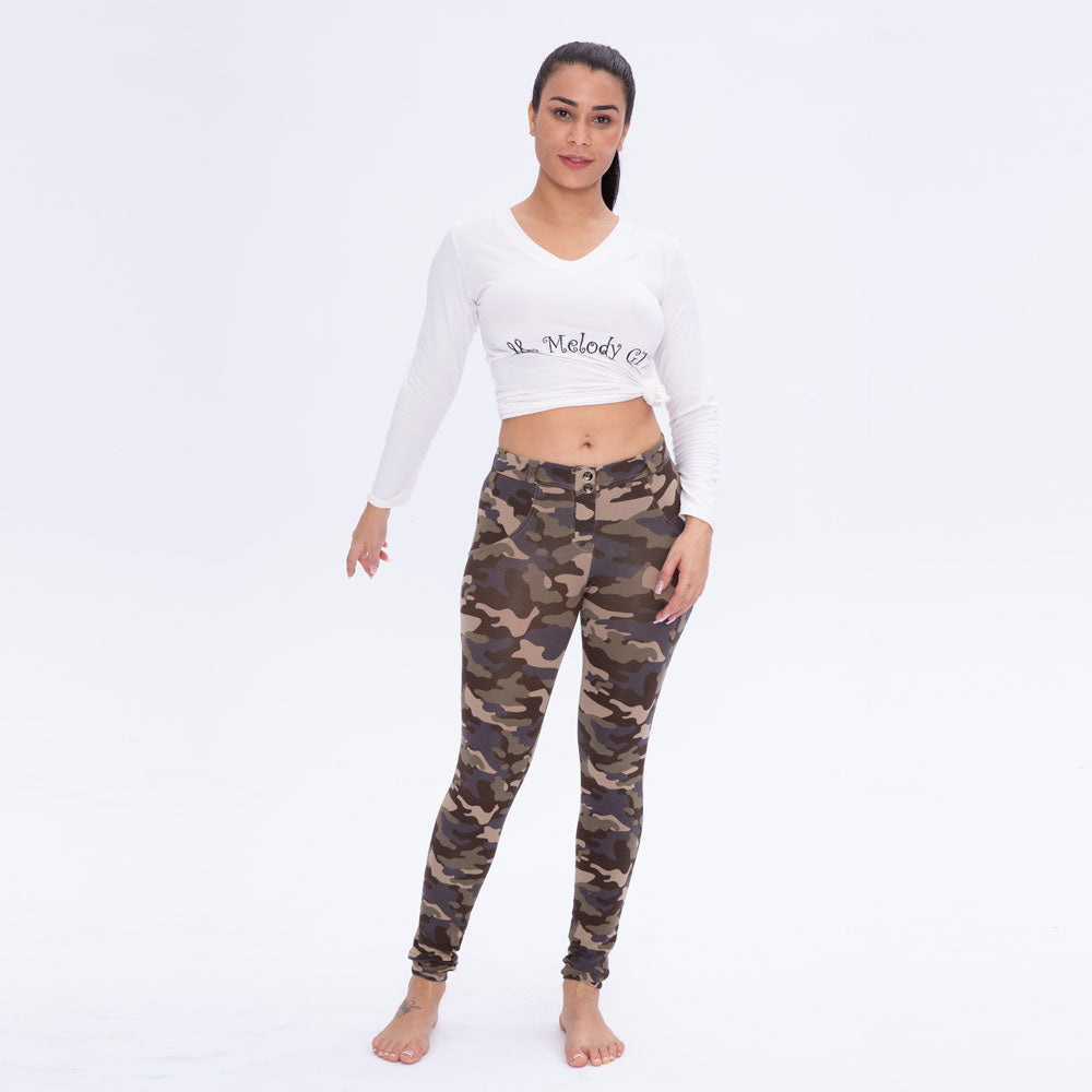 Full-Length Cotton Polyester Pants with Camouflage Pattern and Zipper Closure