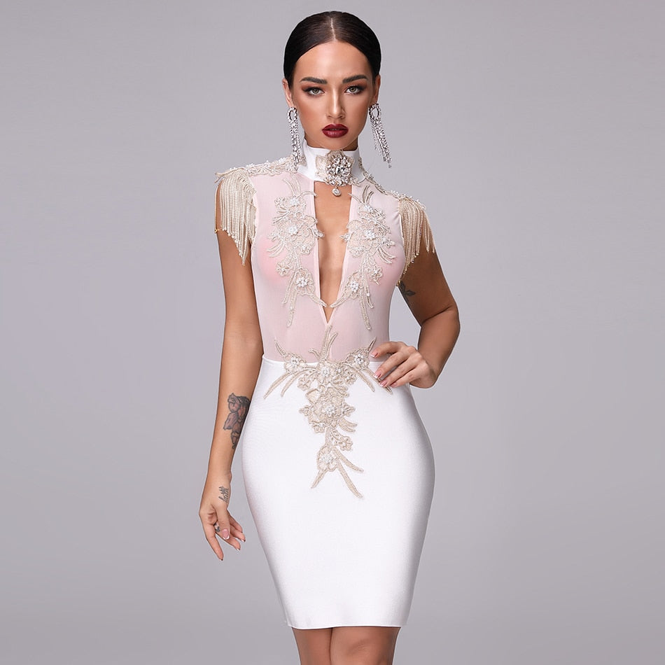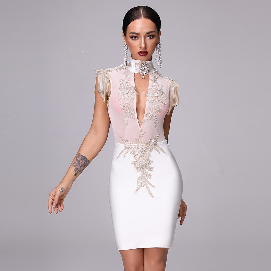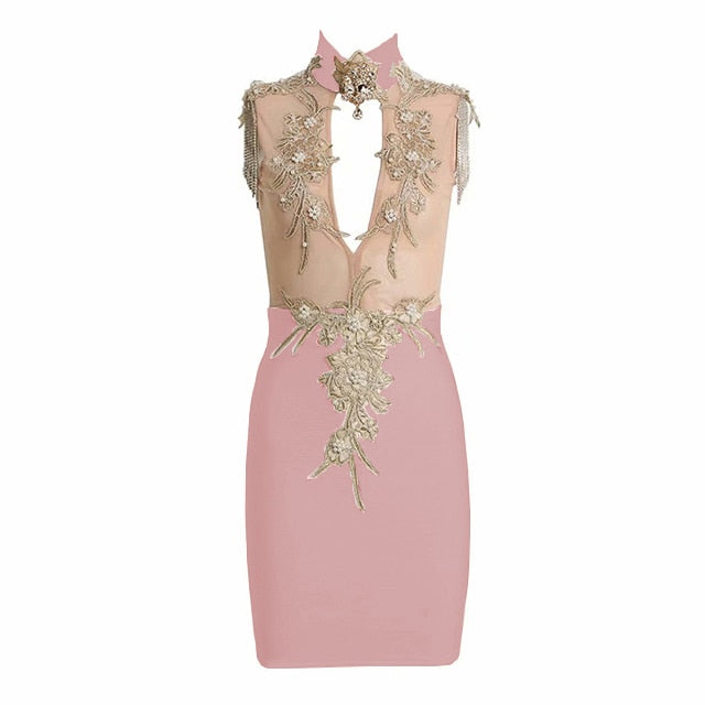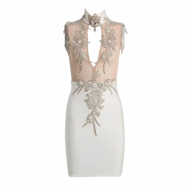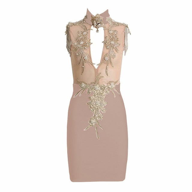Nylon Rayon Spandex Sleeveless O-Neck Mini Dress