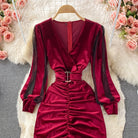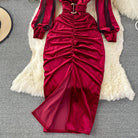 This stylish midi dress is the perfect way to add a pop of color to your wardrobe. The flattering v-neckline and ruched design on the front is sure to turn heads at this season's hottest parties. Pair with heels and a clutch for an elegant yet effortlessly cool look.