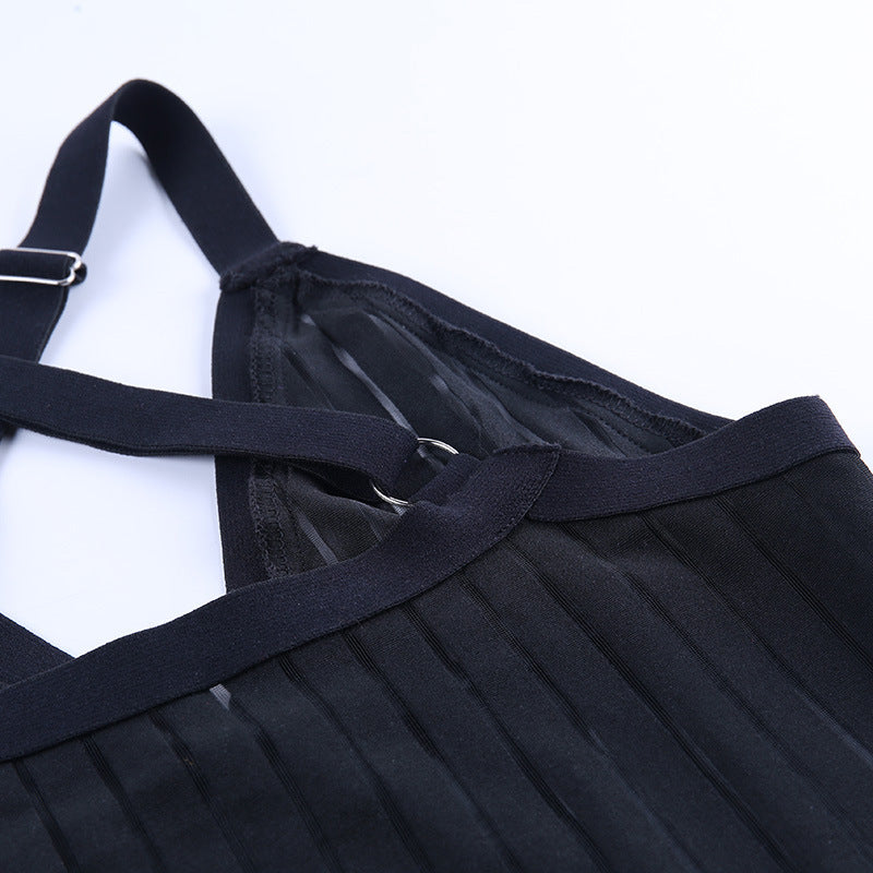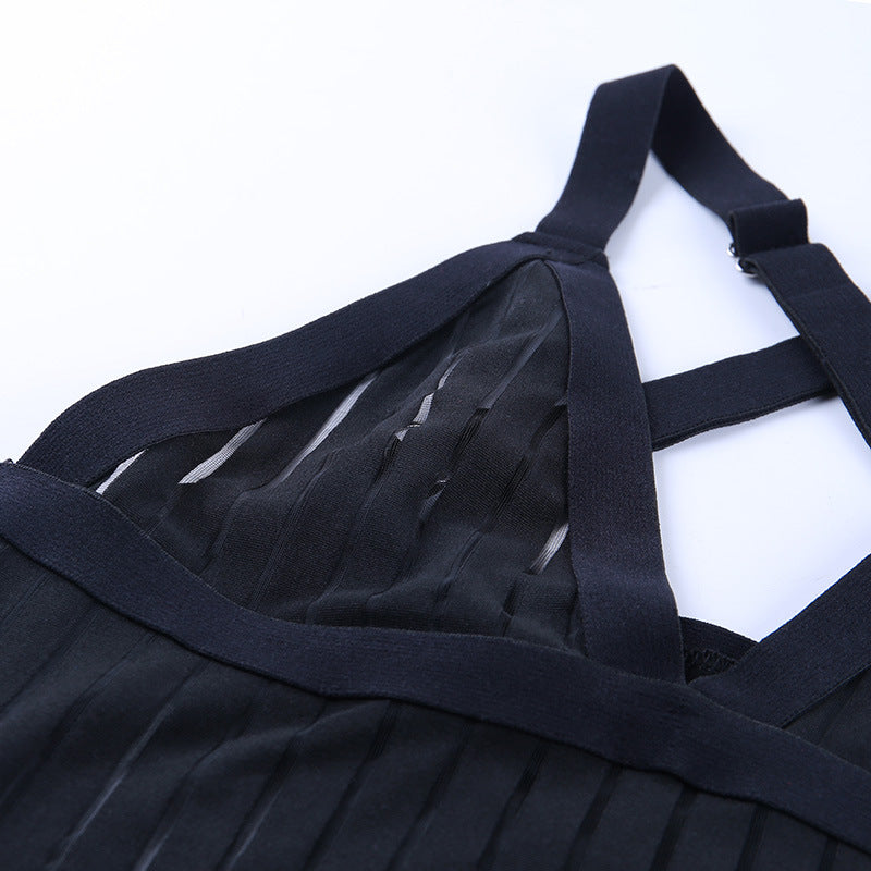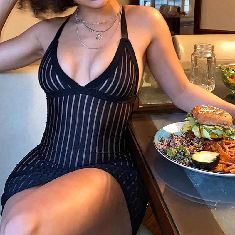 Sleeveless Polyester Spandex Mini Dress with Striped See-Through Style Combination