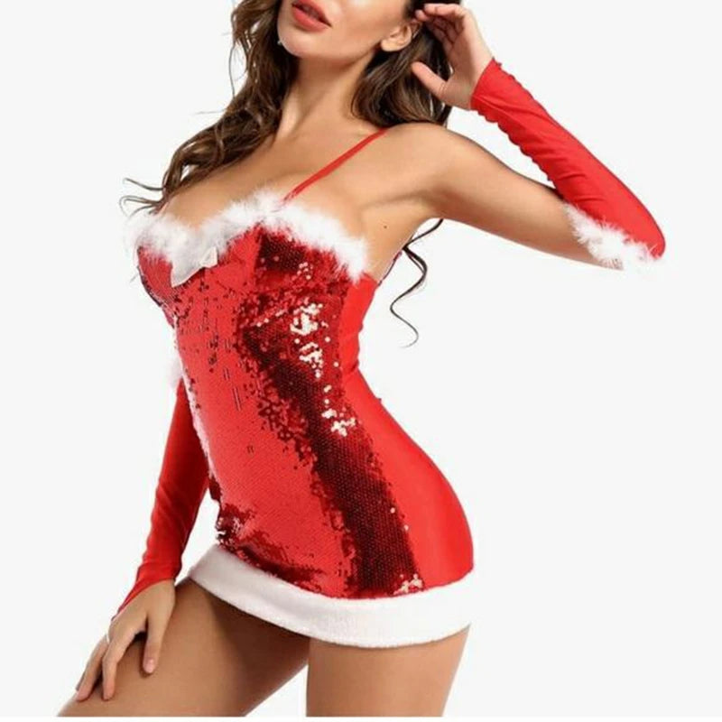 Make a bold statement this season with our Cruel Desire Mini Dress, featuring a playful Santa Claus character design that flips festive tradition on its head. Crafted from sleek polyester with eye-catching sequined embellishments, this daring piece combines holiday spirit with unapologetic edge. The shimmering details catch every light, ensuring you command attention at any gathering.