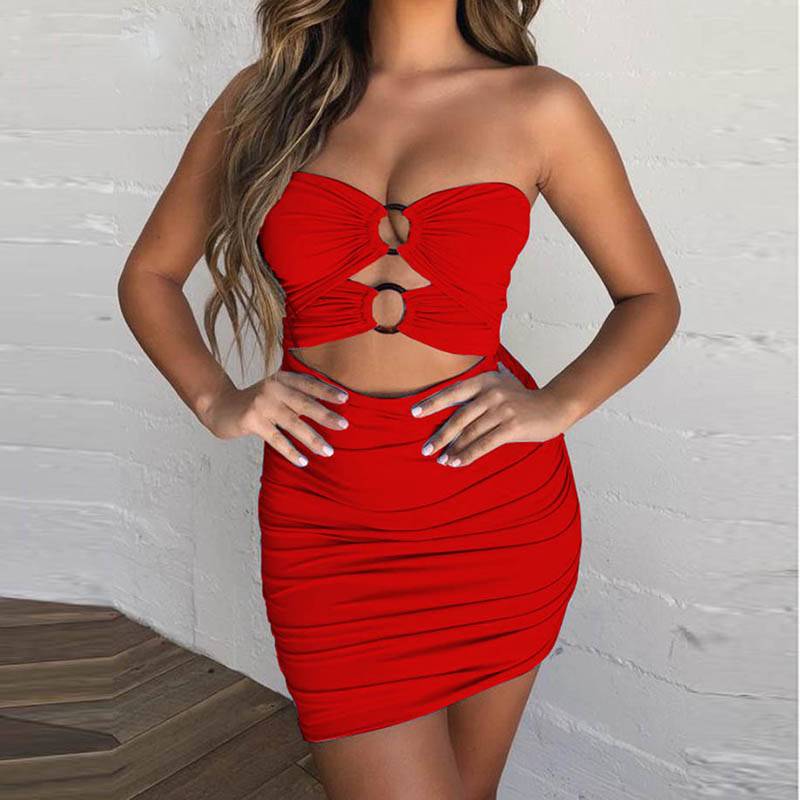 Polyester Sleeveless Hollow Strapless Sexy Mini Dress