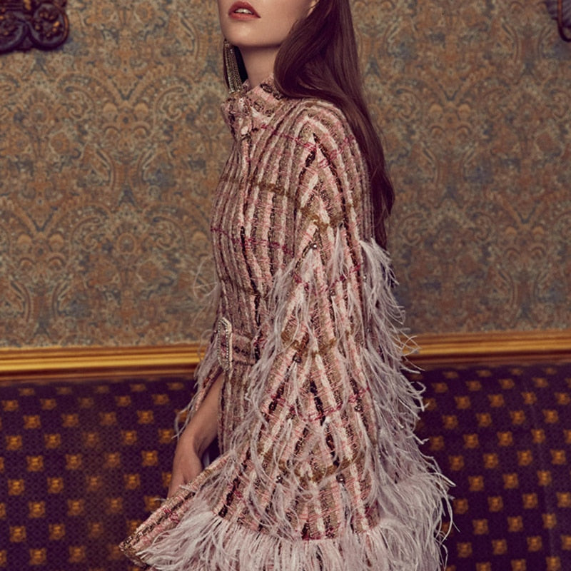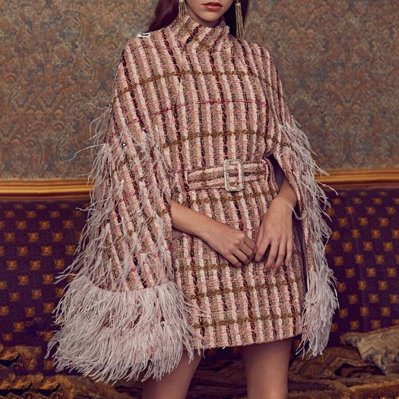 Cotton Polyester on Covered Button Turtleneck Midi Dress