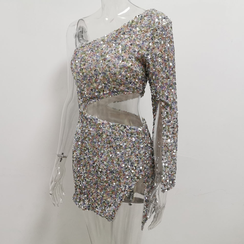 Polyester on Slash Neck Wrist Sleeve Body Dress