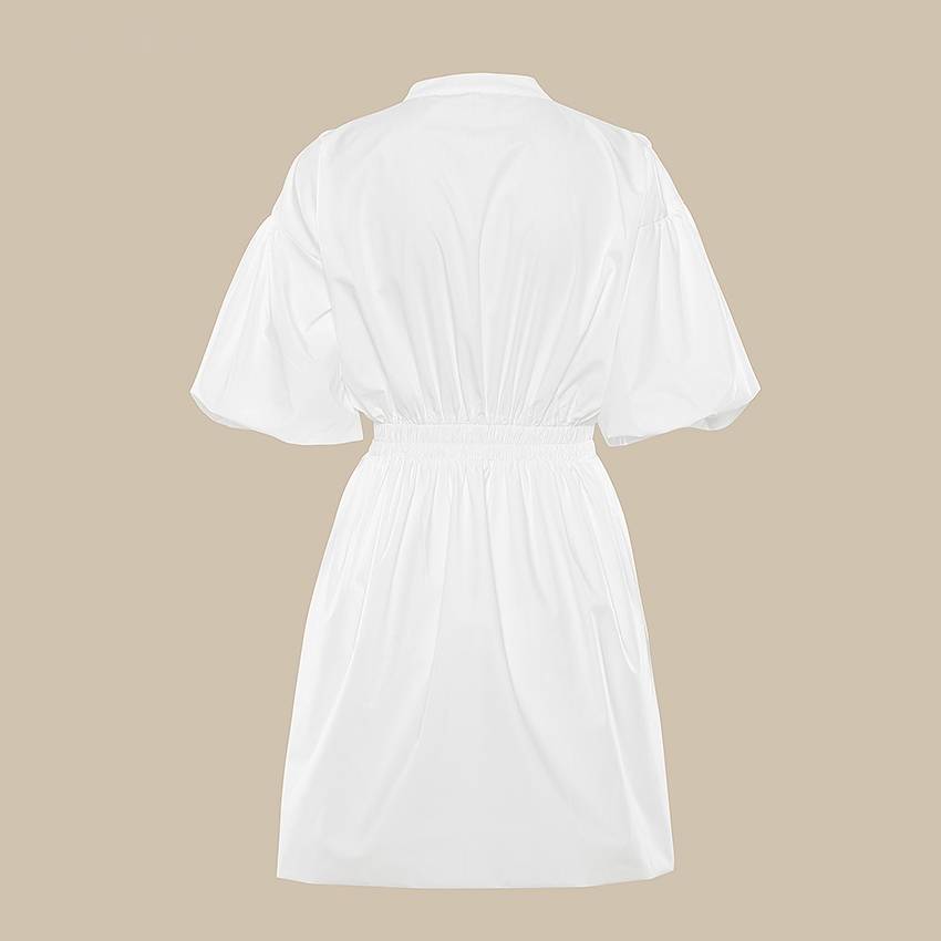 Cotton Polyester V-Neck Puff Sleeve Mini Dress