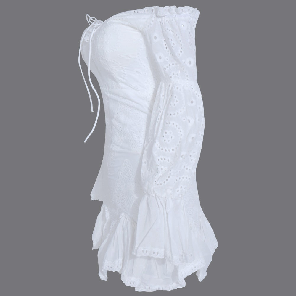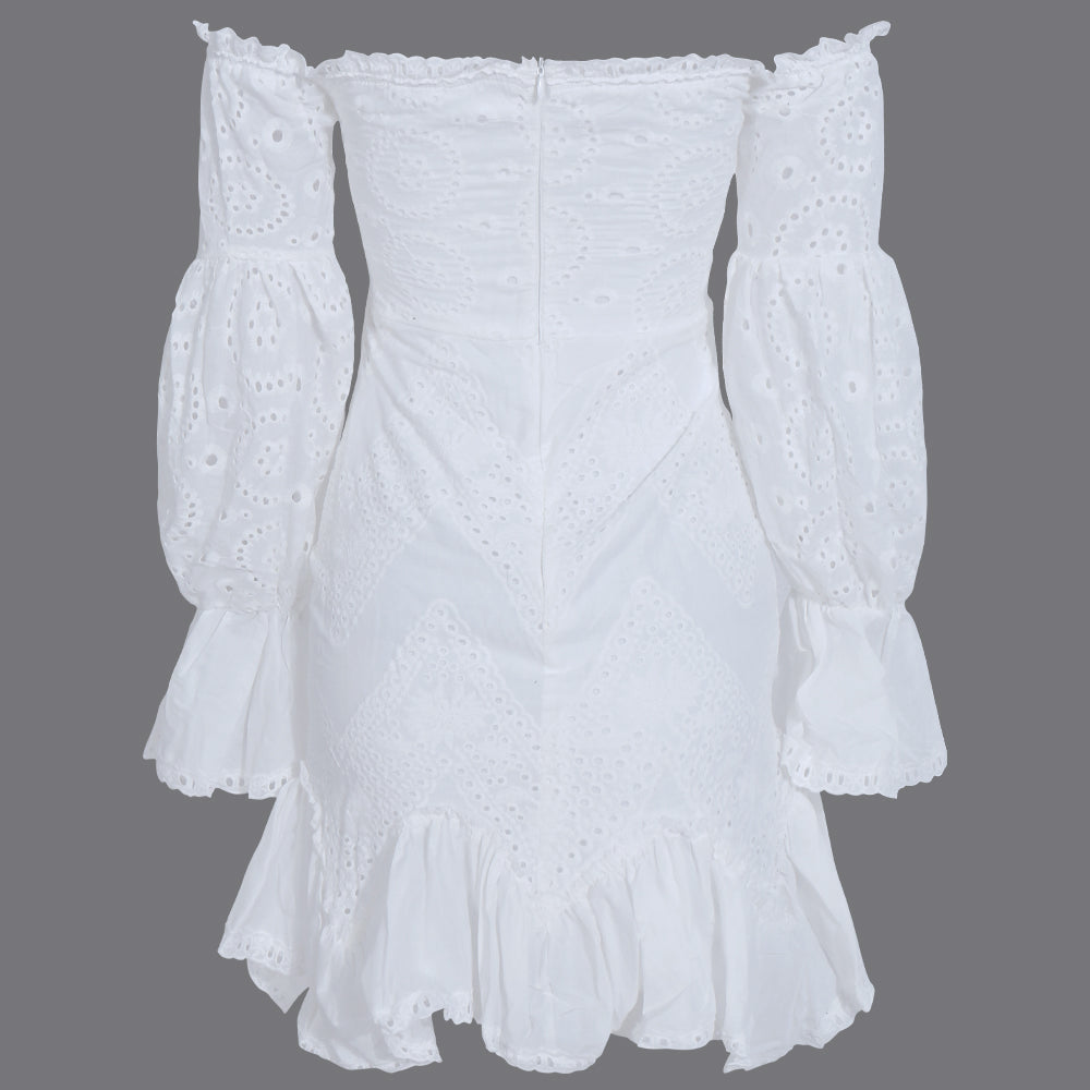 Cotton Polyester on Latern Sleeve Lace Mini Dress