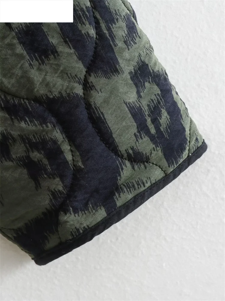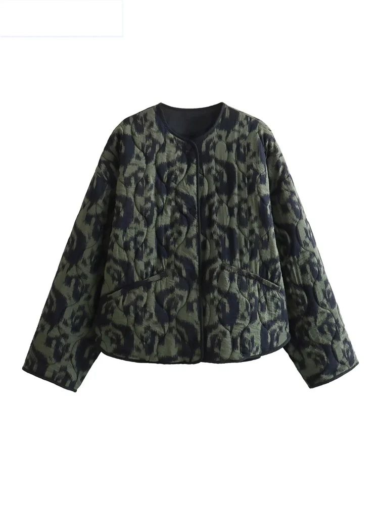 This Jacket adds a stylish touch to your autumn style. The printed polyester fabric is quilted for comfort and warmth. Be ready for the season in this chic and cozy jacket.