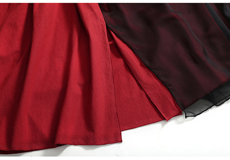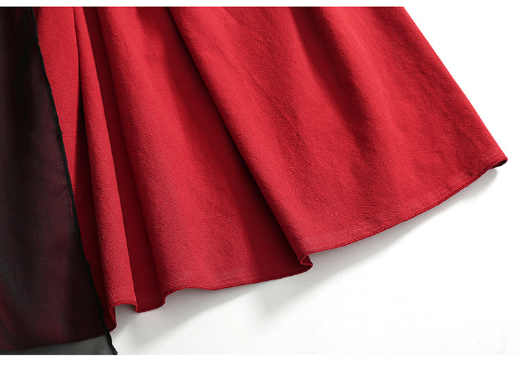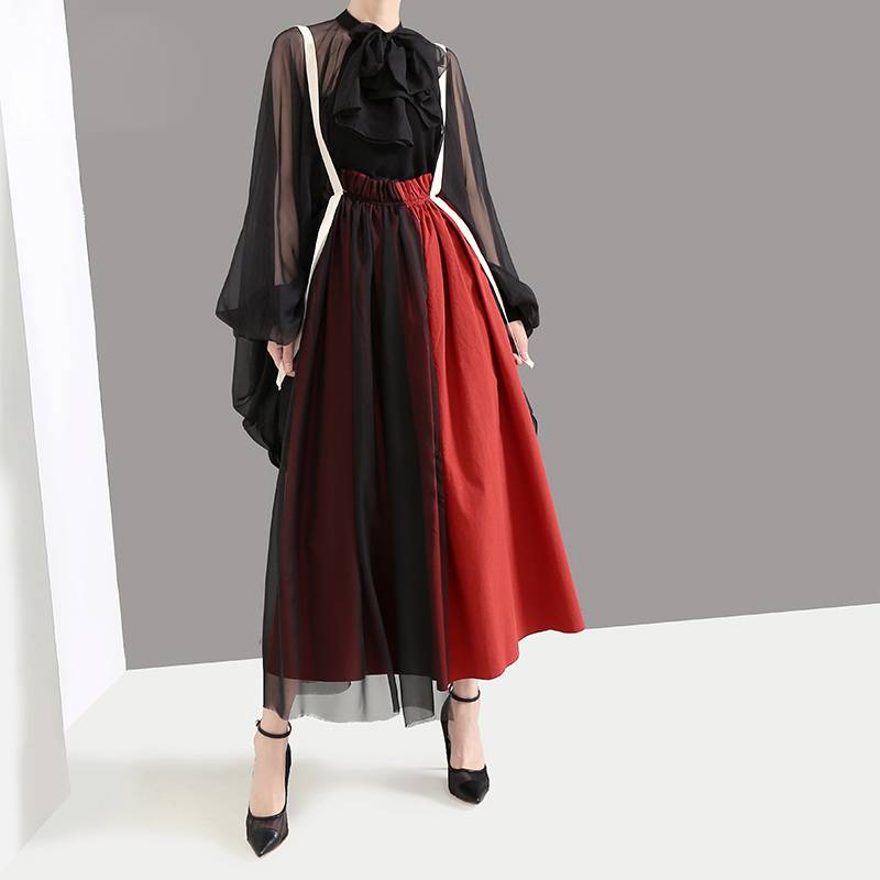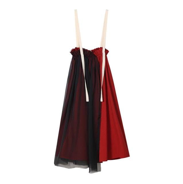 Black and Red Acetate Cotton Rayon A-Line Maxi Skirt with Suspender