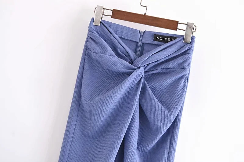 Front Fold Decorated Mini Skirt with Zipper Closure and Cotton Material
