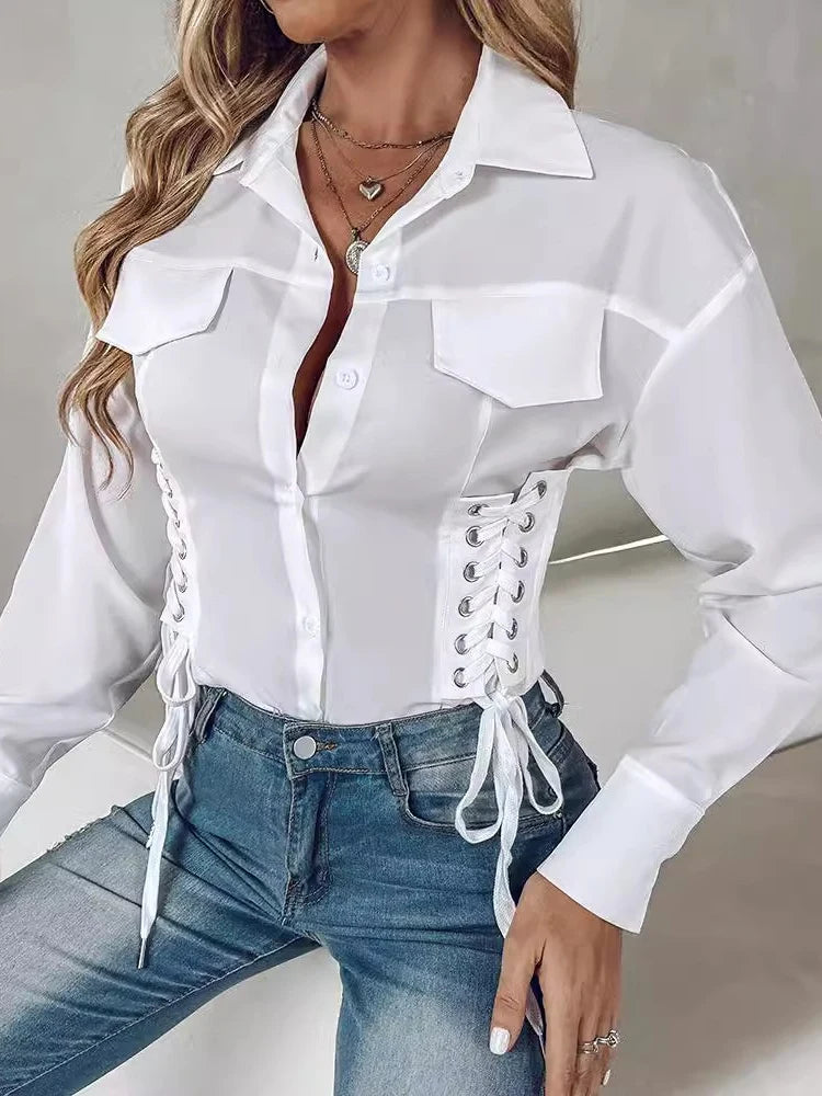Wrap yourself in comfort with our shirt! Made with soft and lightweight polyester, this solid shirt is the perfect everyday staple. The delicate lace detailing adds a touch of elegance, making it a versatile piece for any occasion. Say goodbye to worrying.