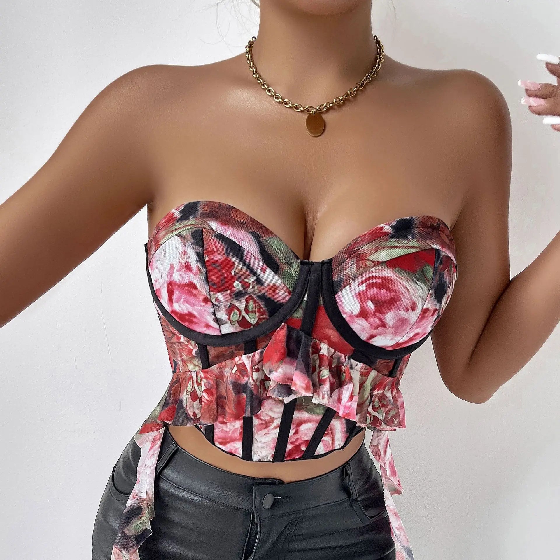 Discover the beauty of our Elegance Like Frost Bustier. Made with a luxurious blend of polyester and spandex, this bustier features a stunning floral pattern that will make you stand out in any crowd. Perfect for special occasions or adding a touch of elegance to your everyday wardrobe.