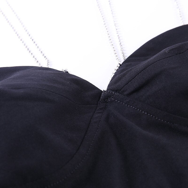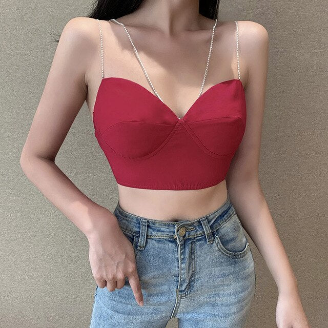 Sleeveless Cotton Polyester Crop Top with Double Chain Strap Style and Sweetheart Neckline
