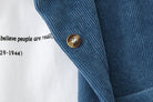 Solid Corduroy Shirt with Turn Down Collar and Single-Breasted Closure