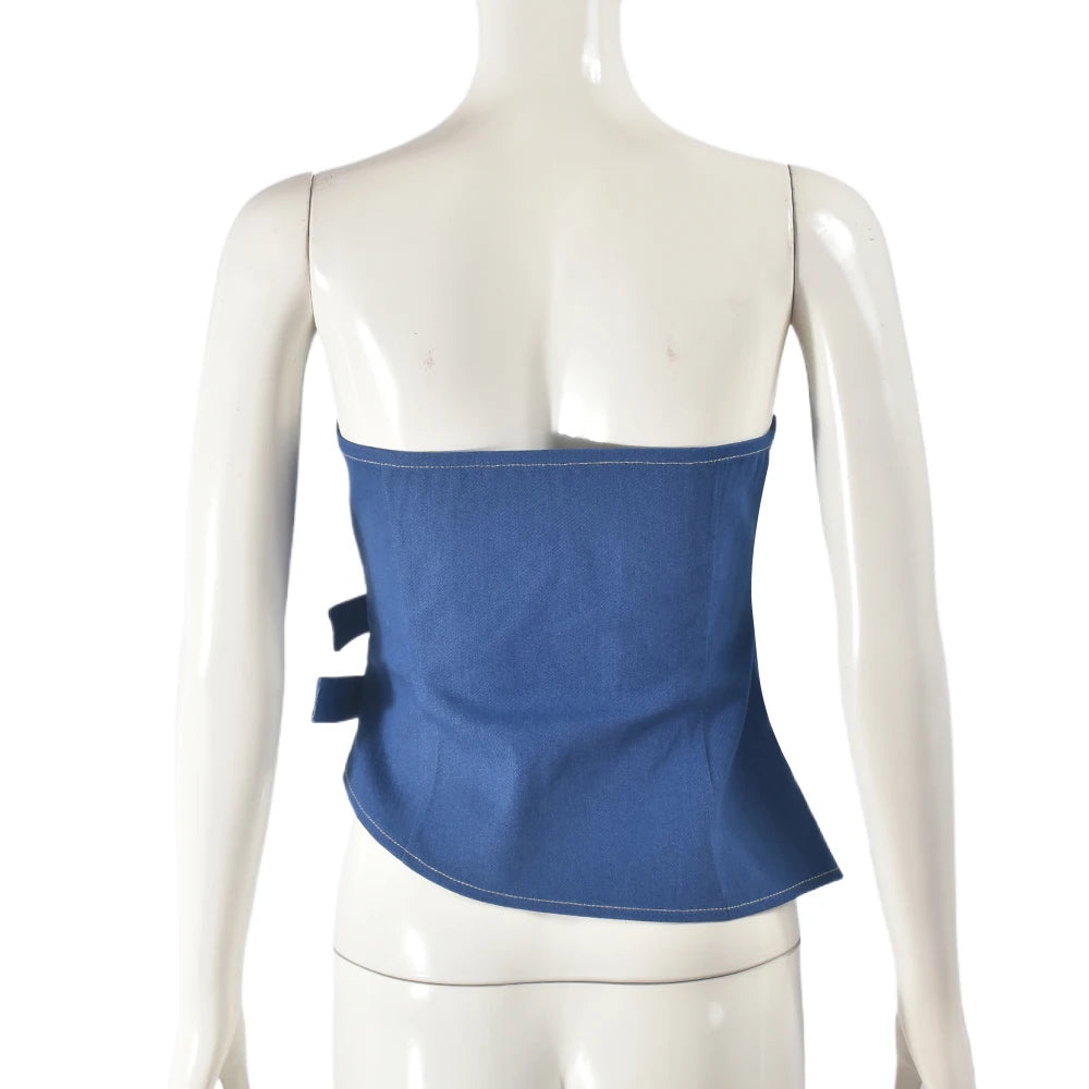 Enhance your summer look with our Sun-Kissed Body Crop Top! Made with comfortable denim material and adorned with a sexy hollow out design, this top will highlight your figure and make you stand out. Perfect for a day at the beach or a night out on the town.
