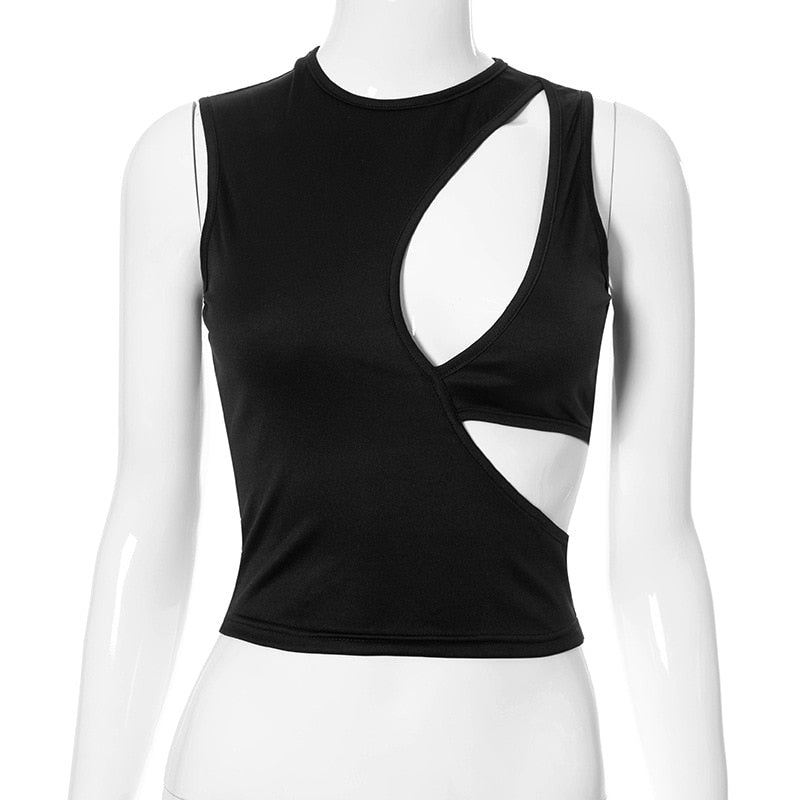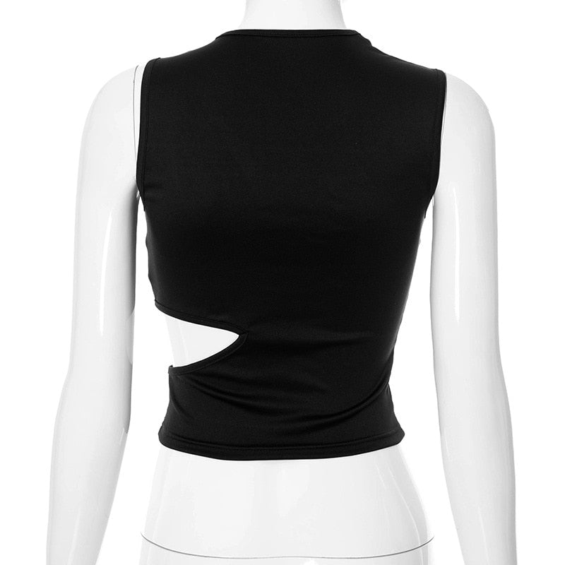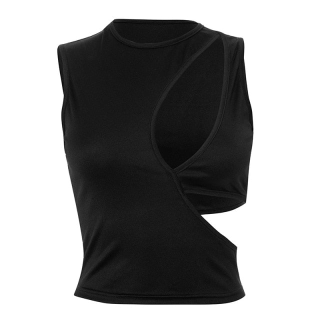 Sleeveless Cut Out Style T-Shirt with Polyester Spandex Material