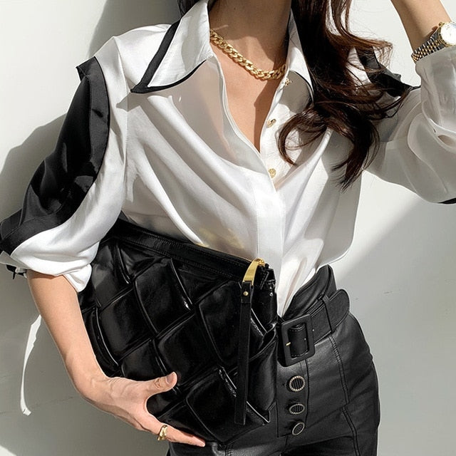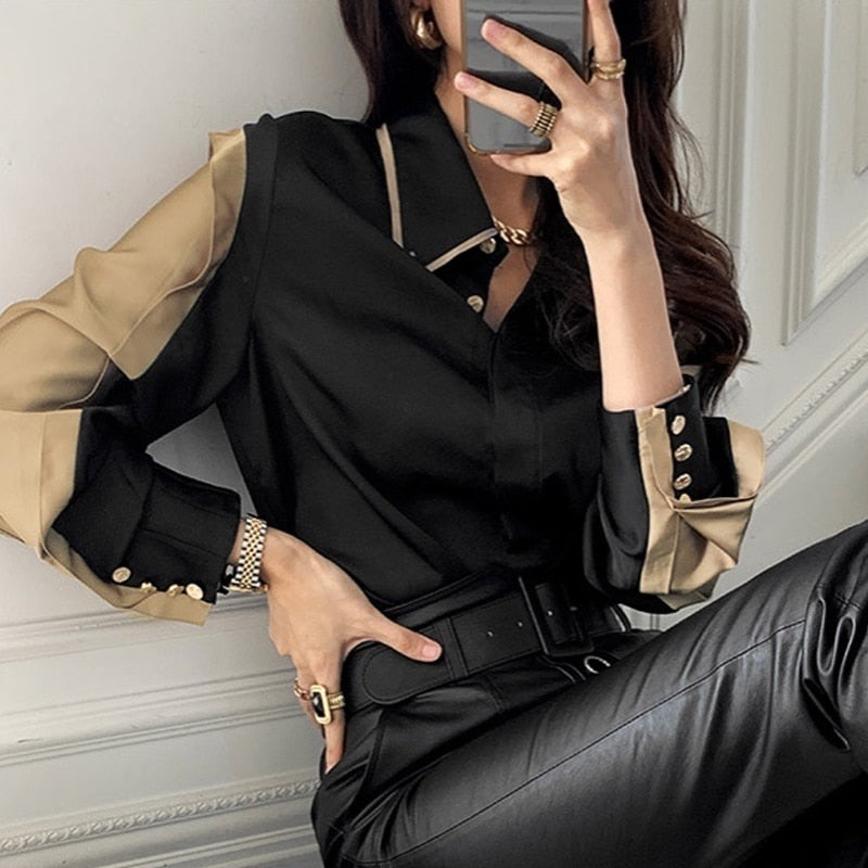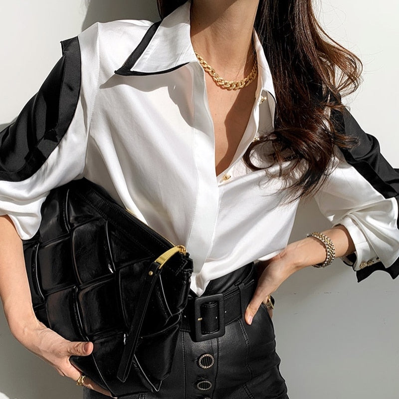 Long Sleeve Solid Shirt with Turn Down Collar, Button Fly Closure, Viscose Material, and Satin Fabric Type