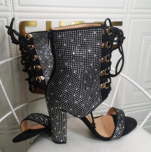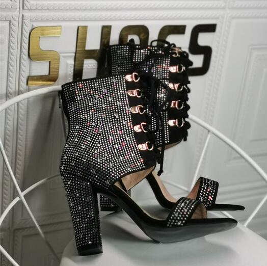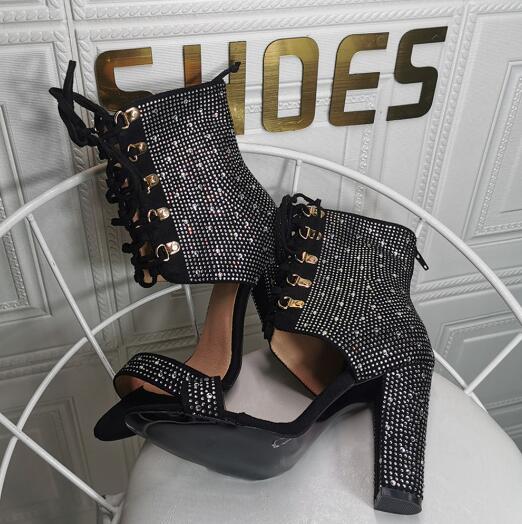 Sequined Cloth Cross-Tied Peep Toe Ankle Boots
