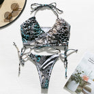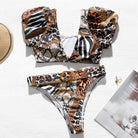 Animal Patterned Polyester Spandex Bikini with Short Butterfly Sleeve and Halter Top Variants