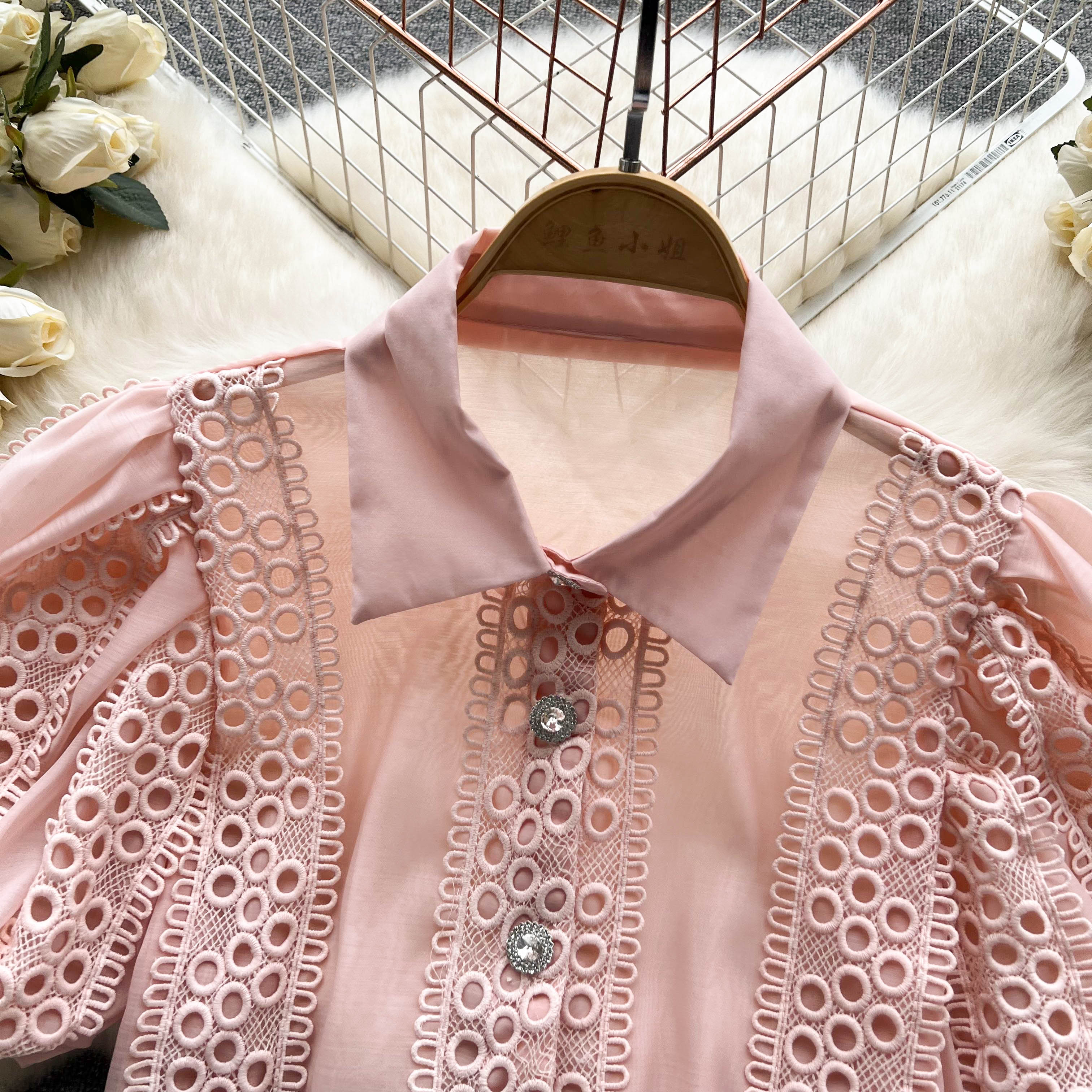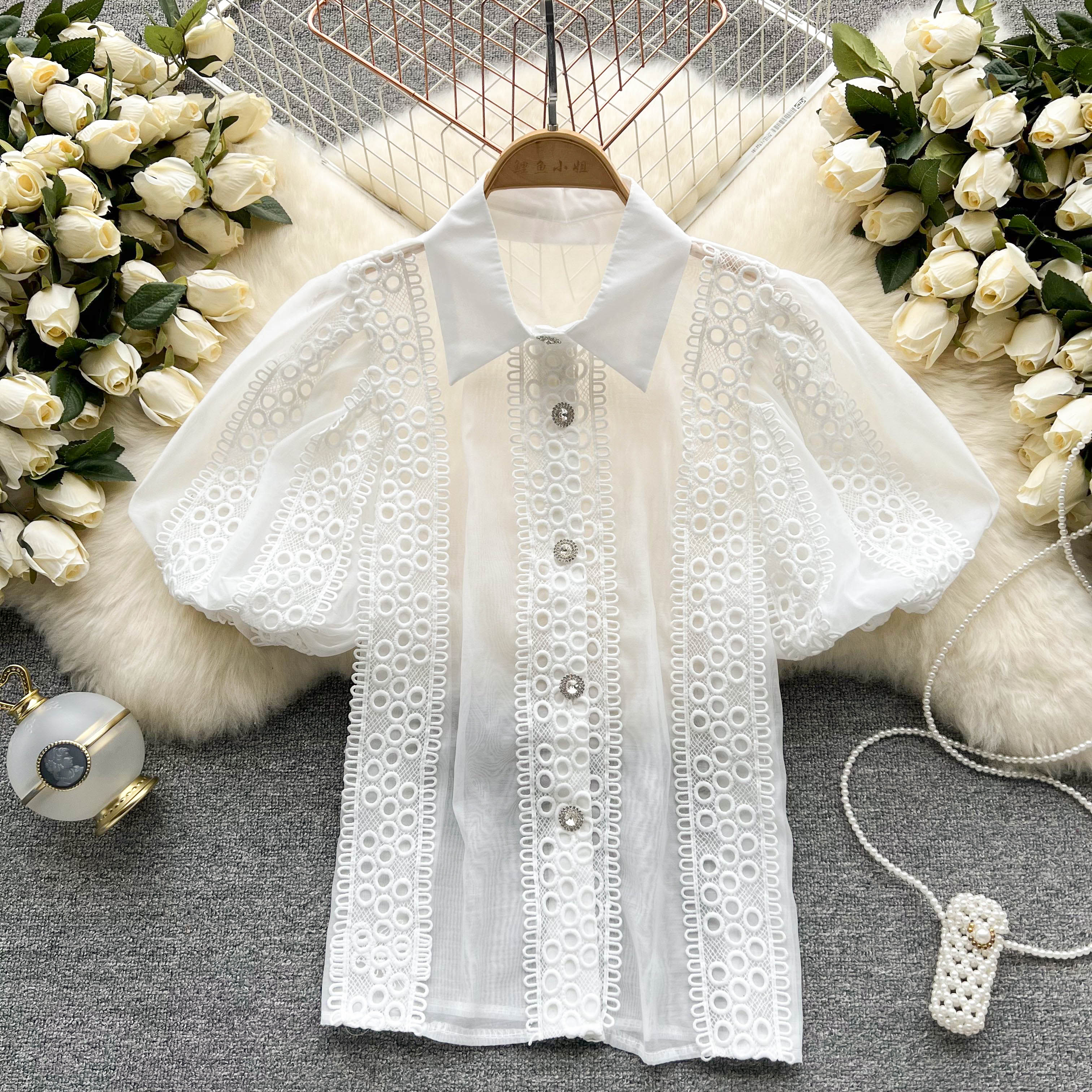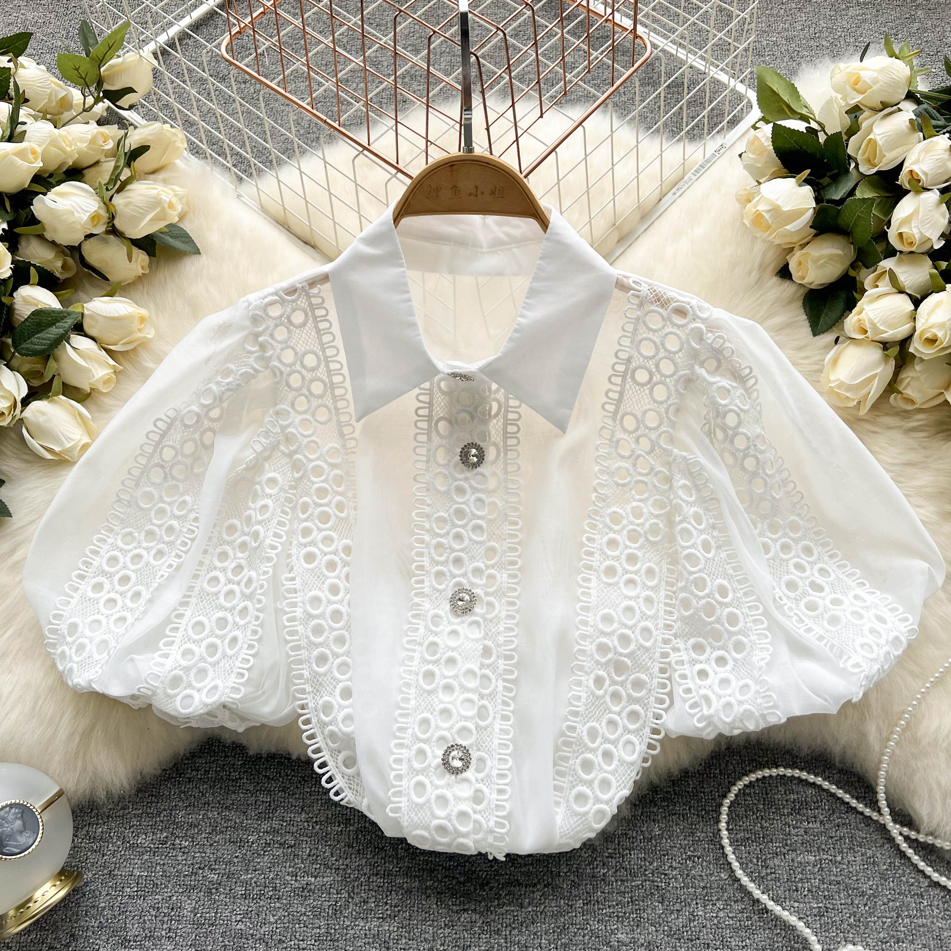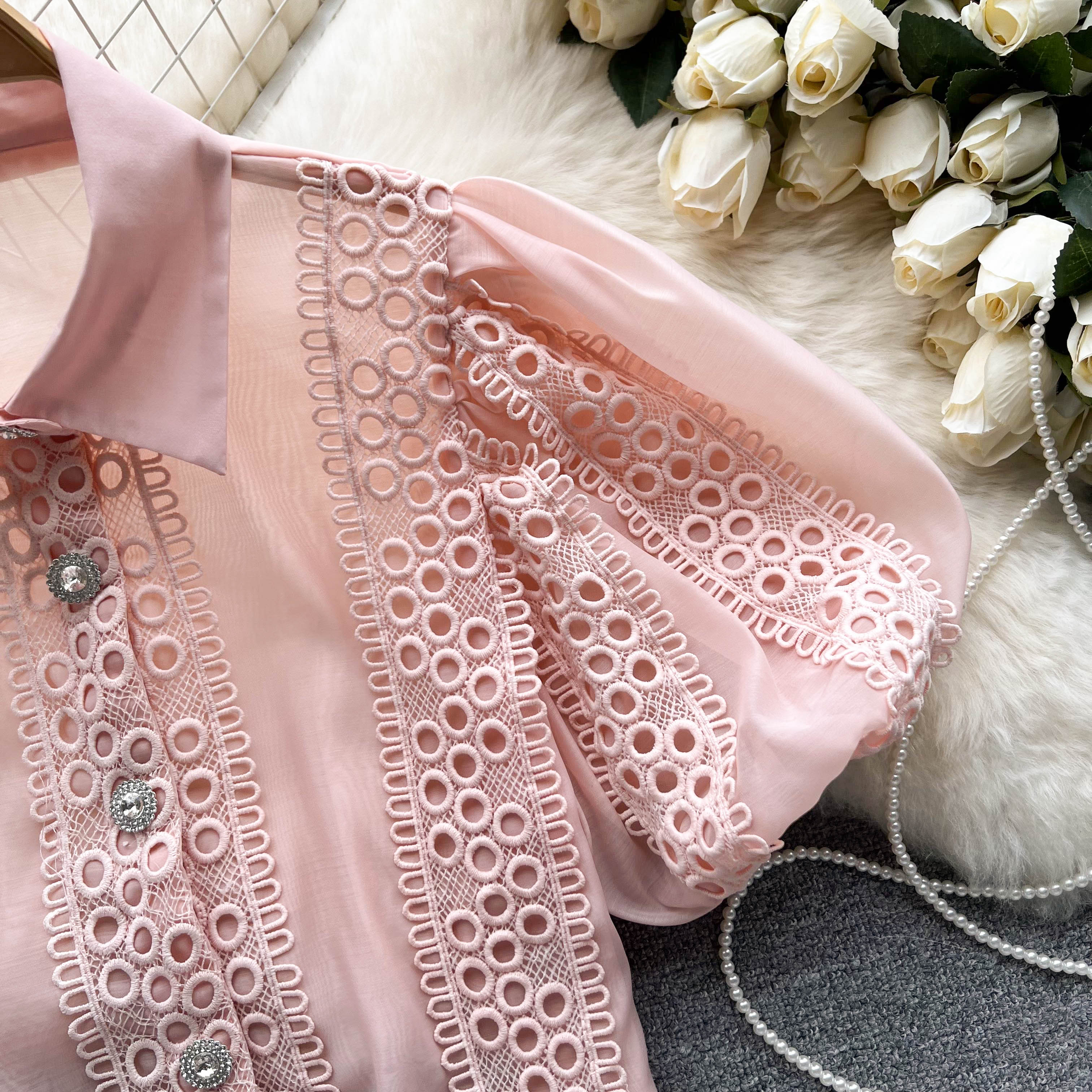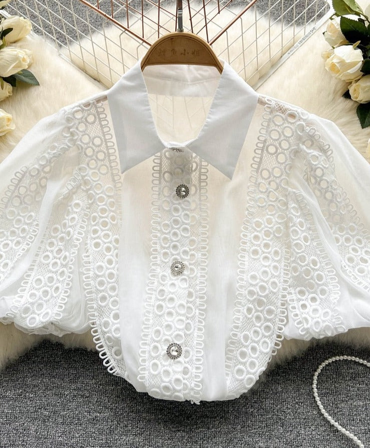 This is the perfect blouse for the stylish and sophisticated woman who would like to add a feminine touch to her wardrobe. It has a sophisticated lace design that adds a feminine touch to your look. An elegant design with a puff sleeve, this blouse is a great way to make a statement. The soft cotton fabric is perfect for everyday wear and will make her comfortable all day long.