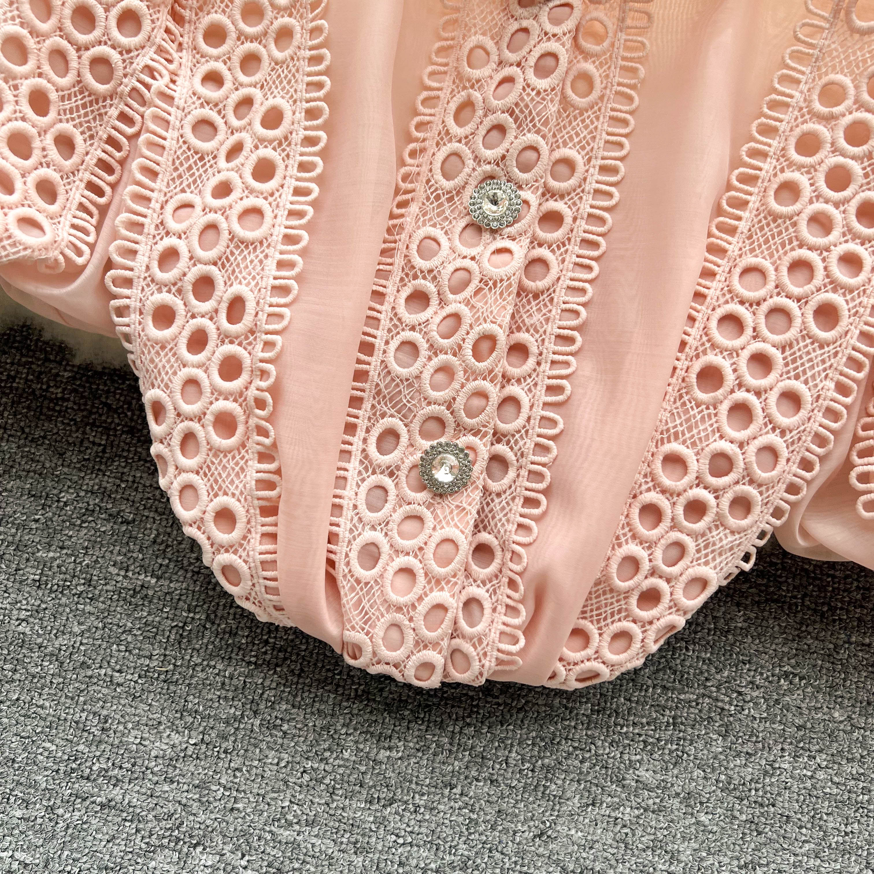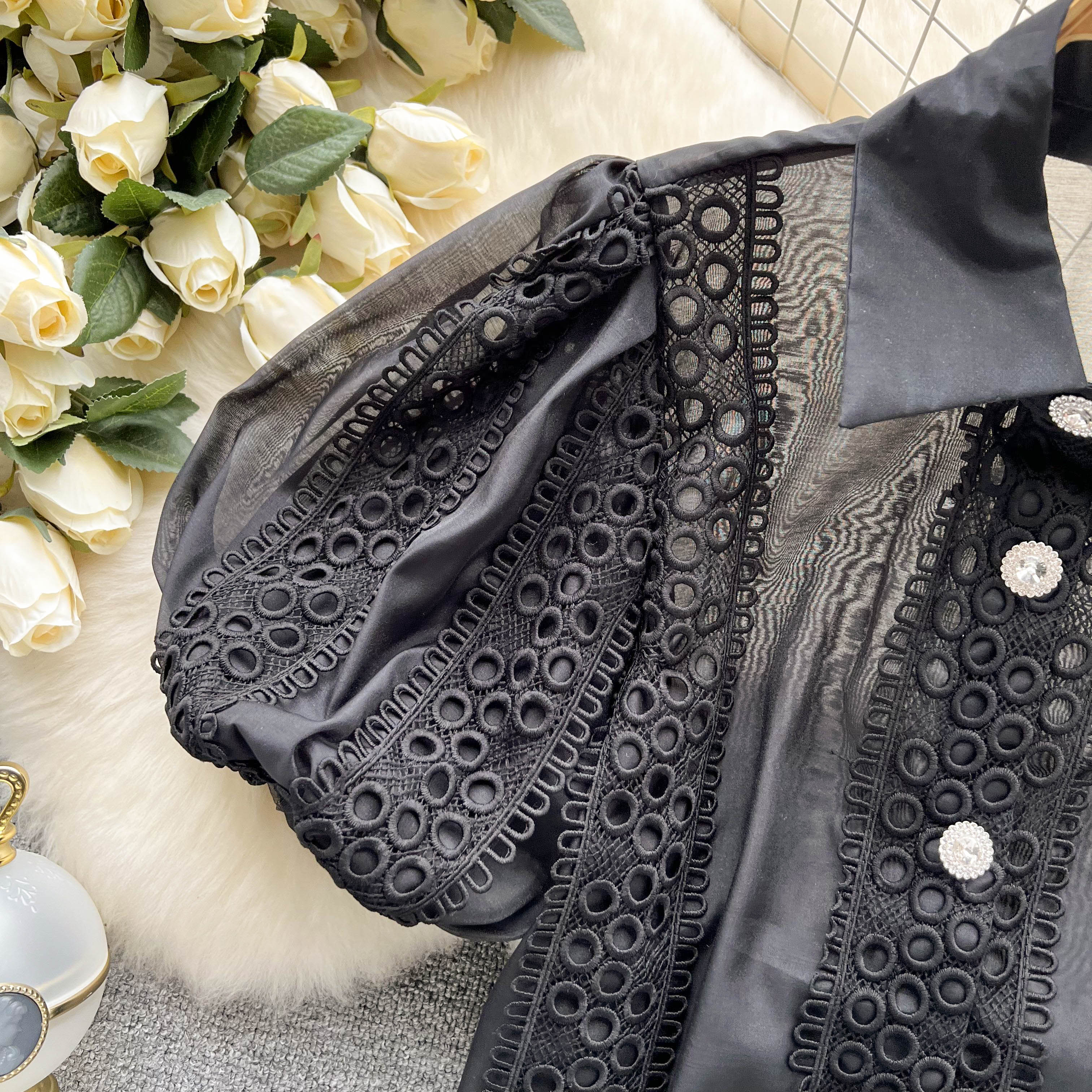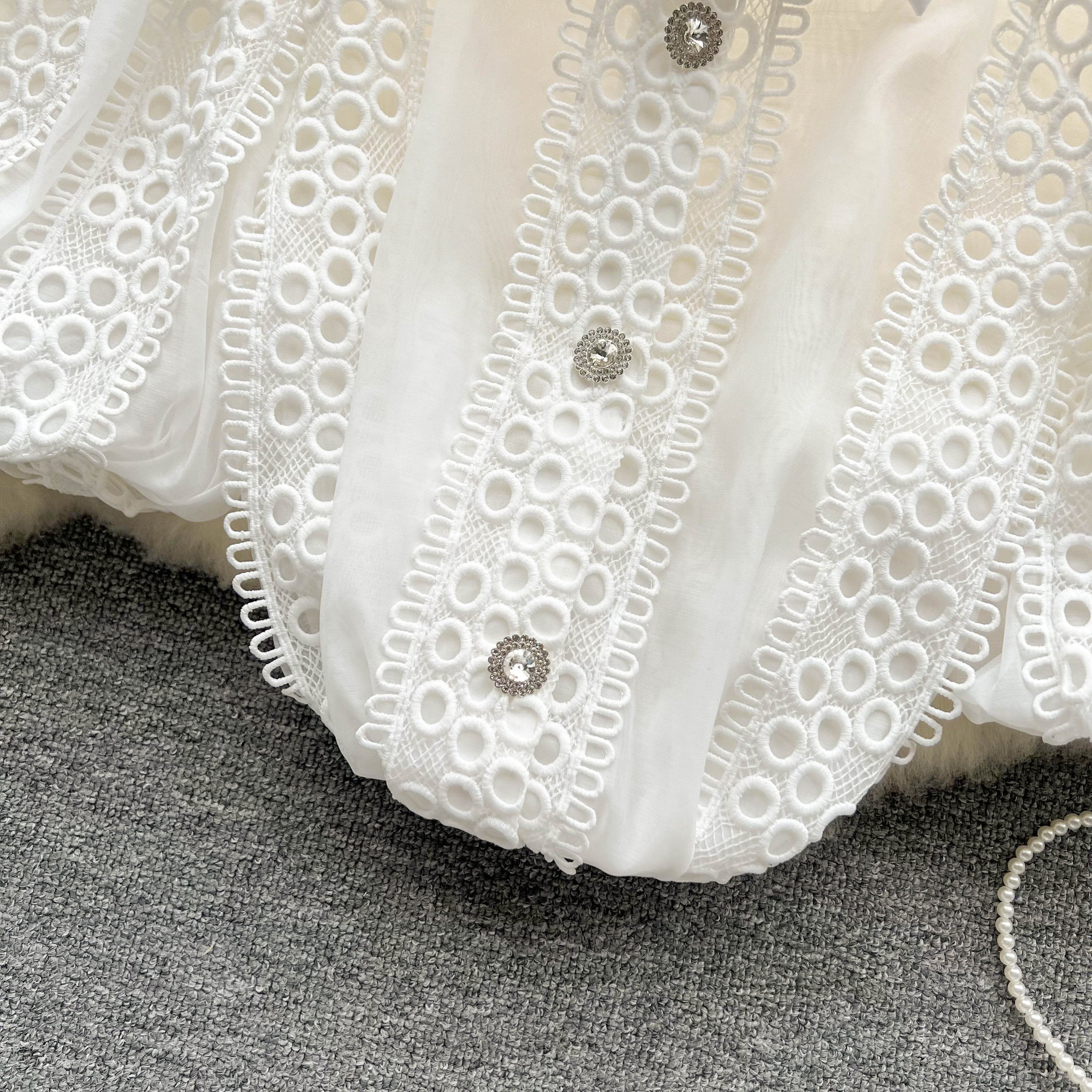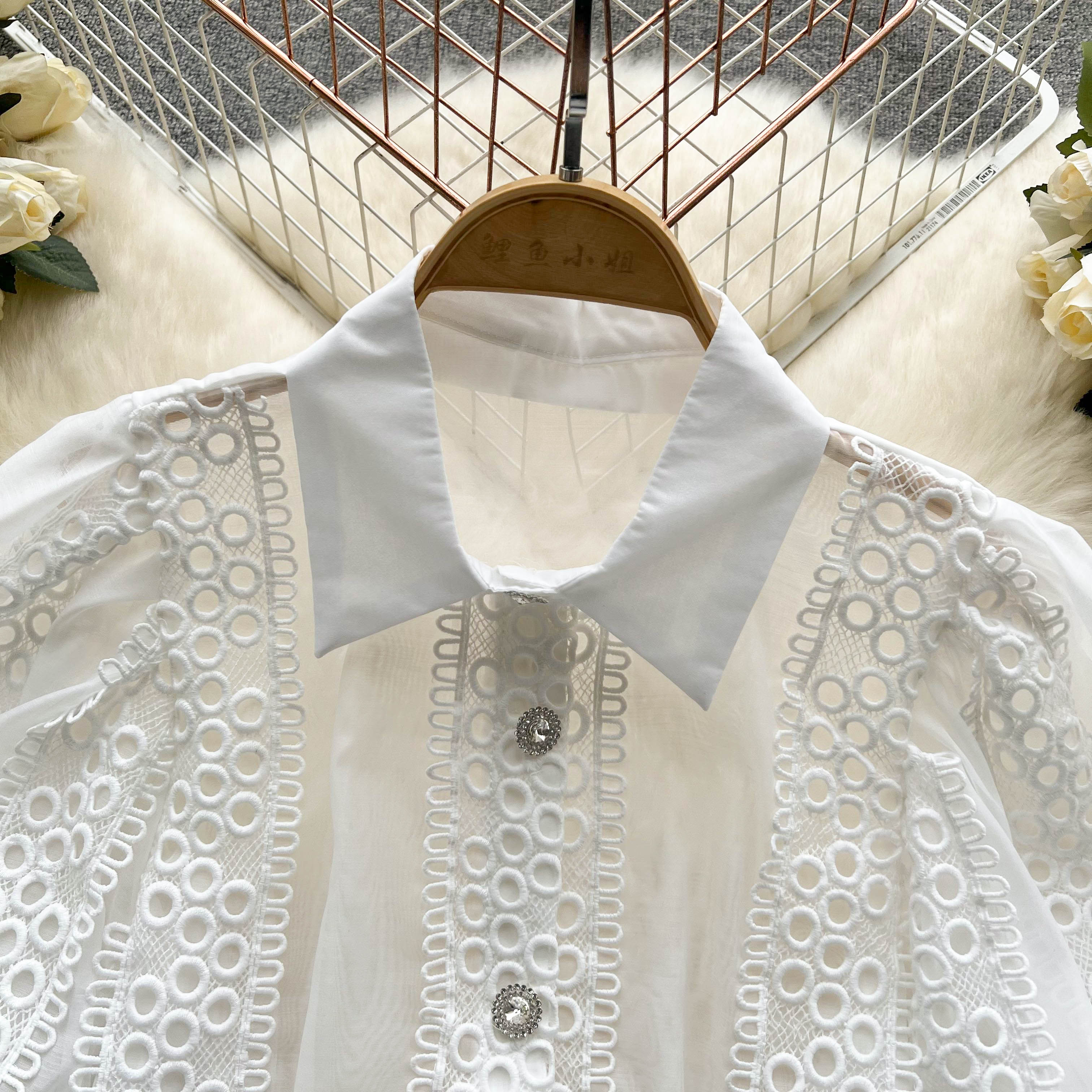 This is the perfect blouse for the stylish and sophisticated woman who would like to add a feminine touch to her wardrobe. It has a sophisticated lace design that adds a feminine touch to your look. An elegant design with a puff sleeve, this blouse is a great way to make a statement. The soft cotton fabric is perfect for everyday wear and will make her comfortable all day long.