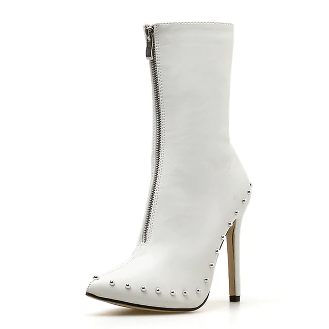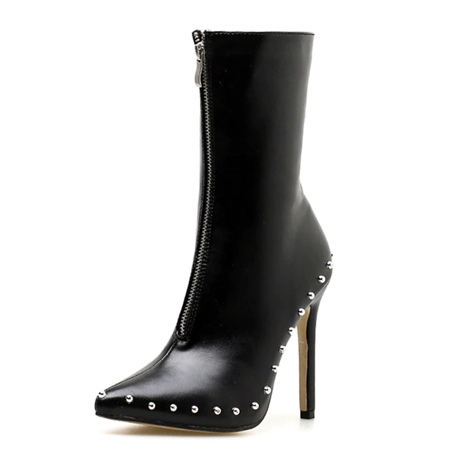 Casual Metal Decoration Rivet Thin Heels Pointed Toe Women Ankle Boots
