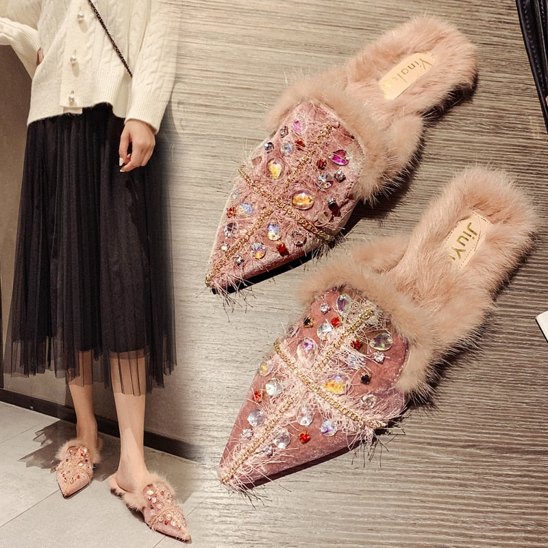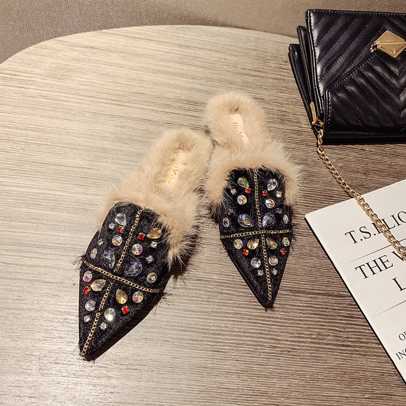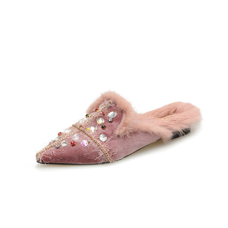 Casual Mules Pointed Toe Slip On Women Flat Shoes