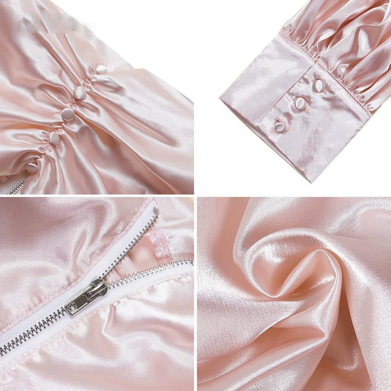 SIlk Pink Backless Pleated Long Sleeve Strapless Crop Top
