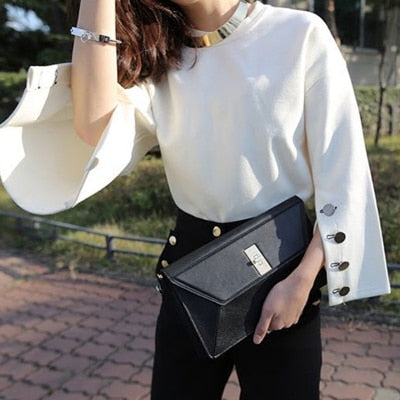 Long-Sleeved O-Neck Collar Cotton Blouse with Button Decoration