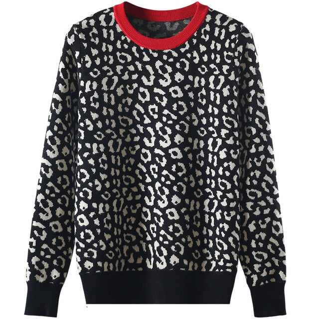 O-Neck Collared Sweater with Leopard Pattern and Polyester Material