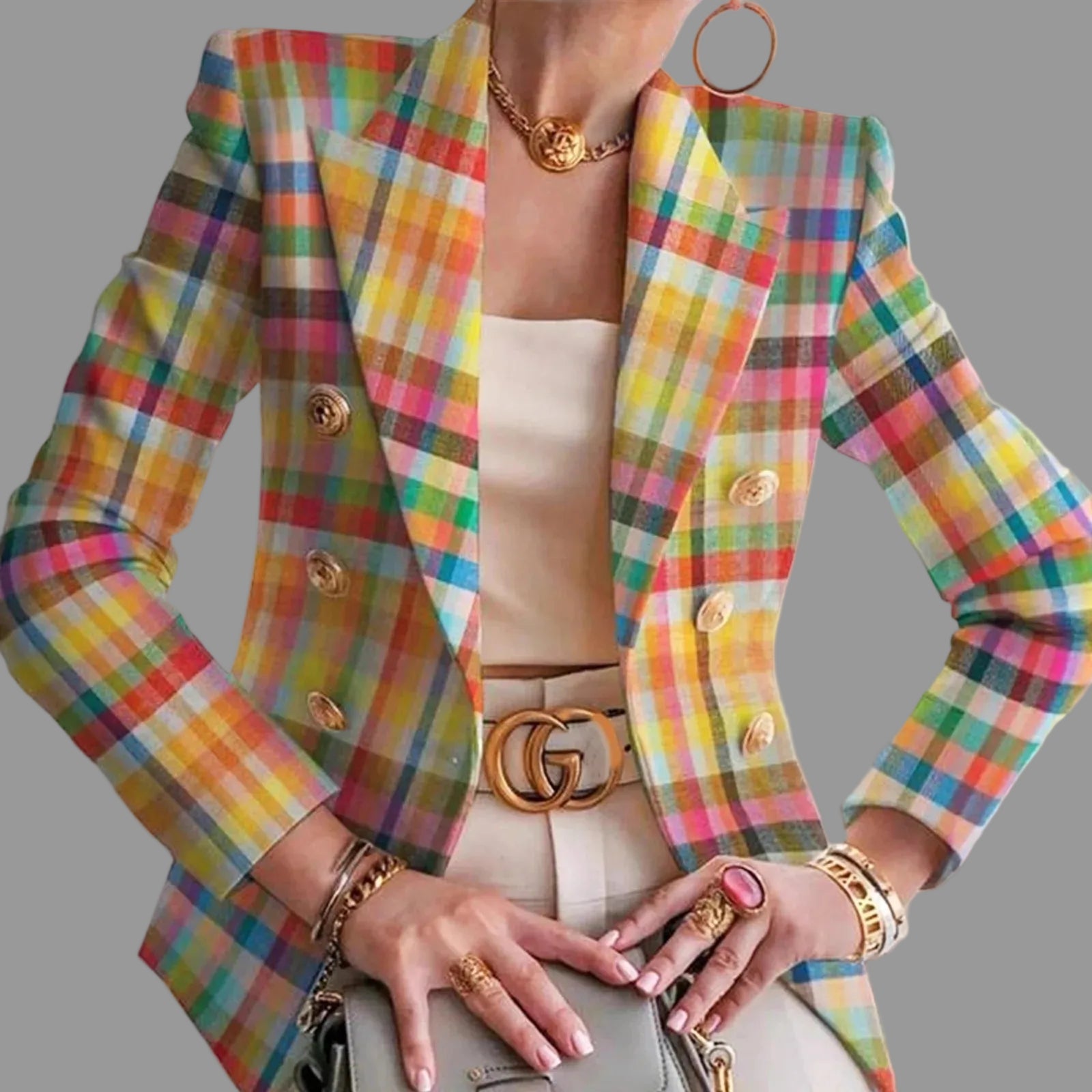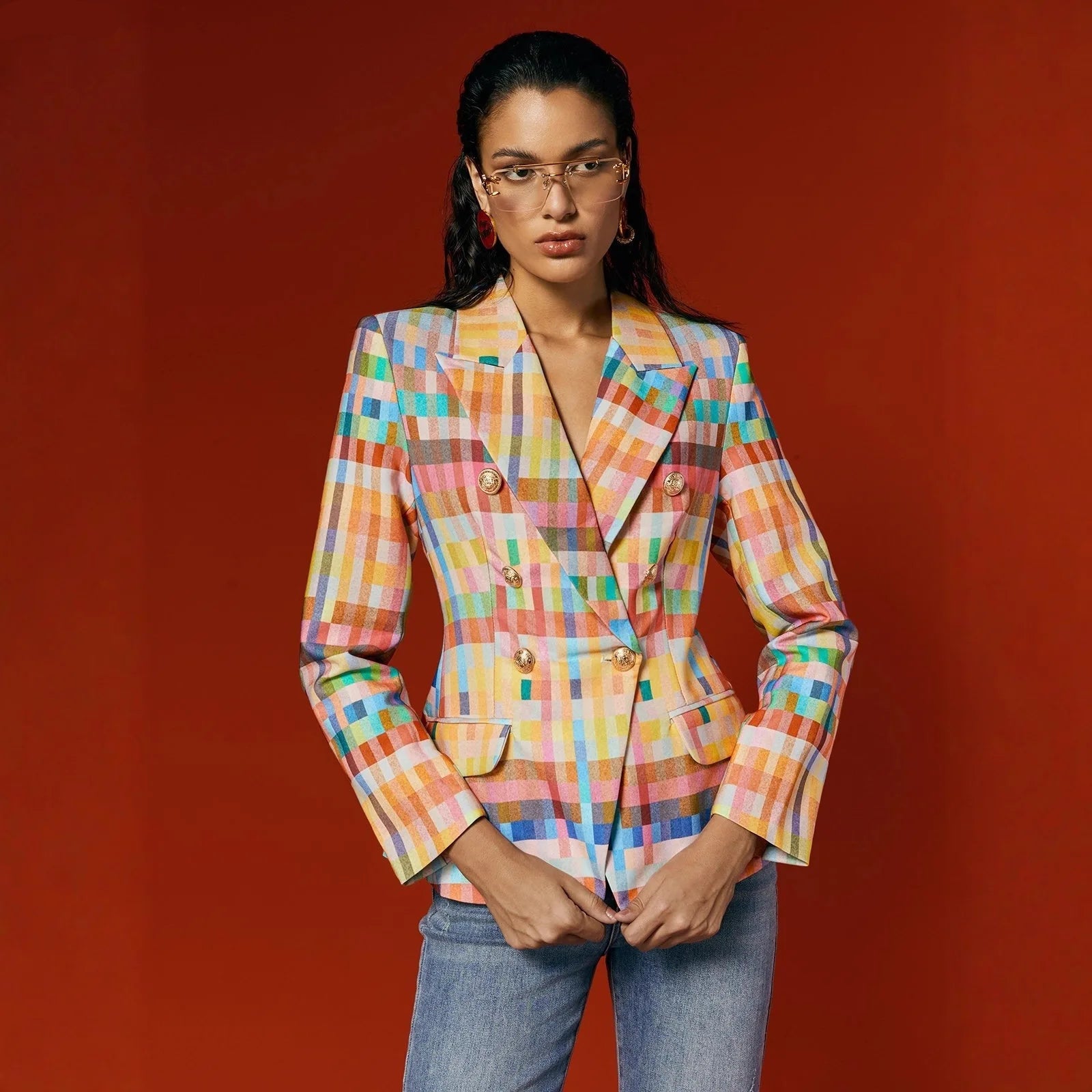 Multicolor Plaid Tailored Blazer