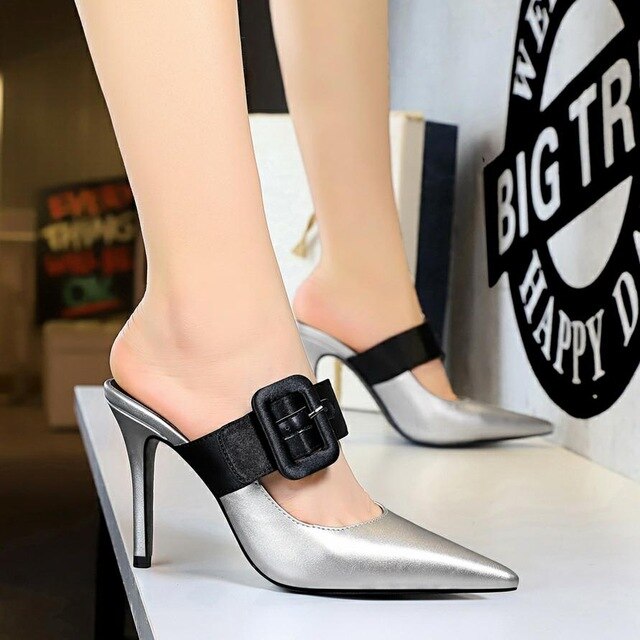 PU Rubber on Buckle Thin Heels Pump