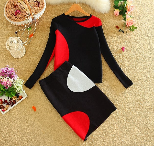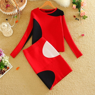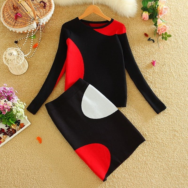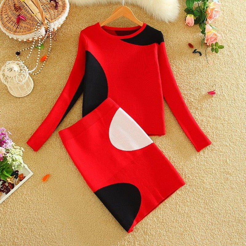 Mix Color Skirt Sets with O-Neck Collar, Elastic Waist, And Cotton Polyester Material