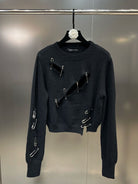 This sweater has a timeless garment crafted with solid, durable polyester with crochet detailing. This classic sweater provides ease of movement while creating a timeless wardrobe staple.