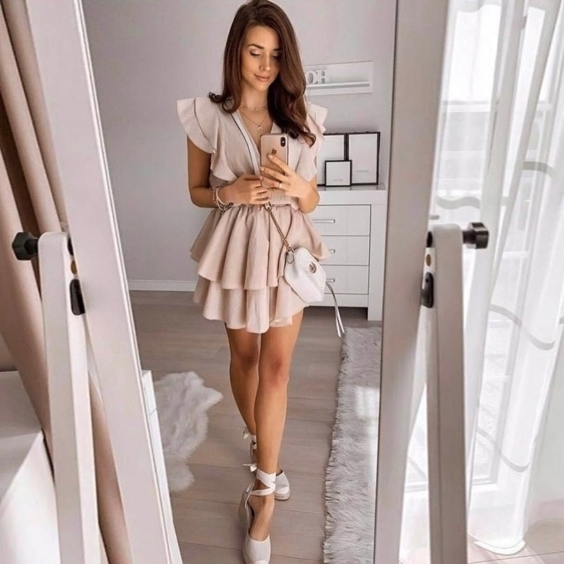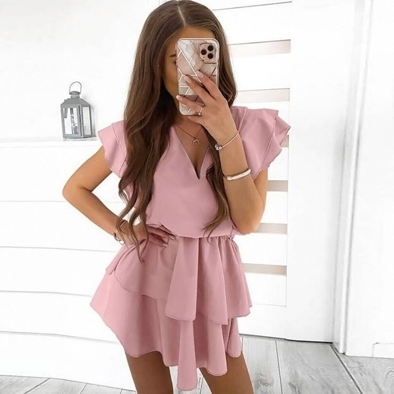Polyester Microfiber Chiffon Draped Decoration Sleeveless Mini Dress