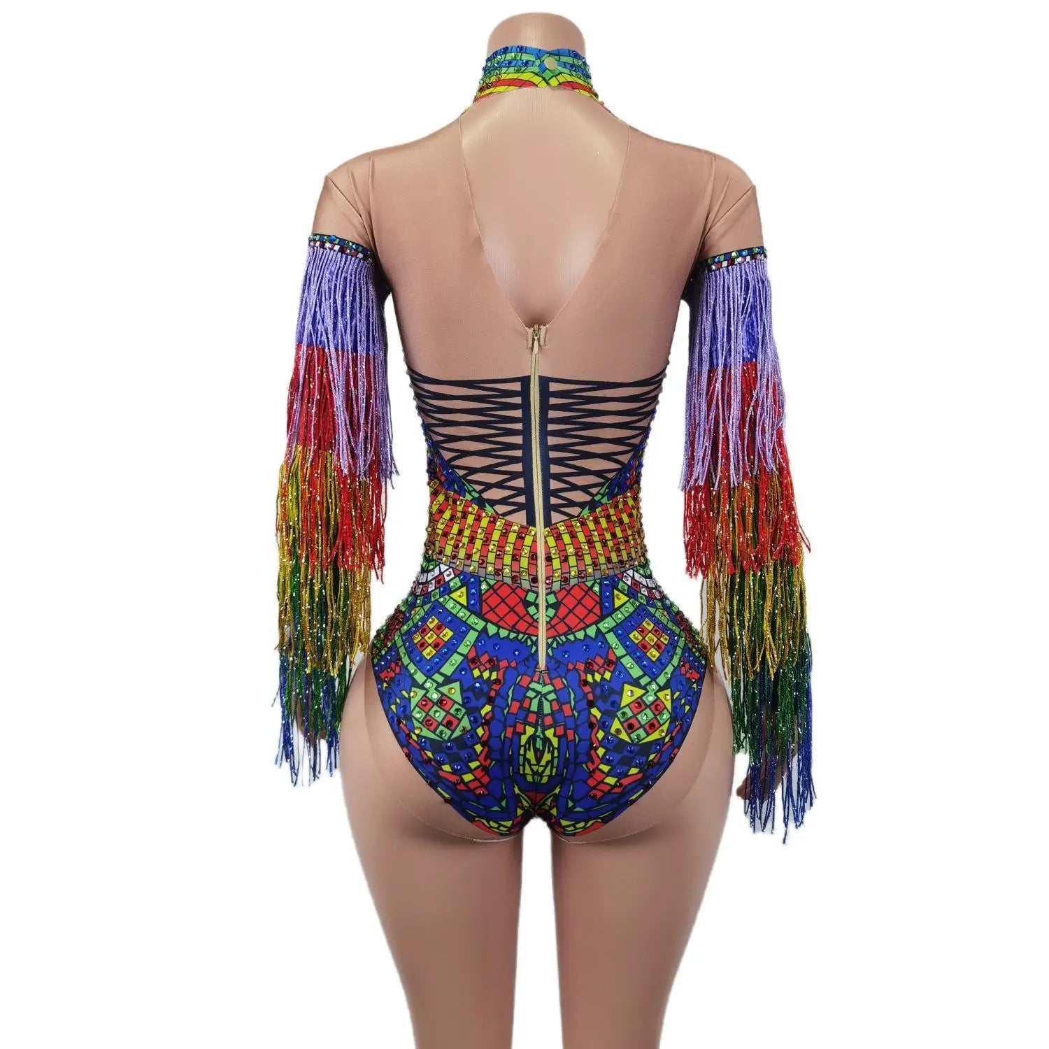 Elevate your style with our Fall In Your Love Bodysuit. Made with high-quality Spandex for comfort and flexibility. The playful design features sparkling rhinestones and flirty tassels. Show off your arms with the full sleeve length. Perfect for expressing your vivacious personality!