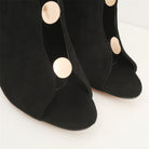 Flock Deep V Button Zipper Ankle Heels