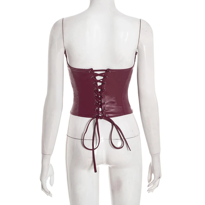 Faux Leather Back Lace-Up Bustier