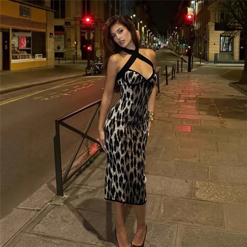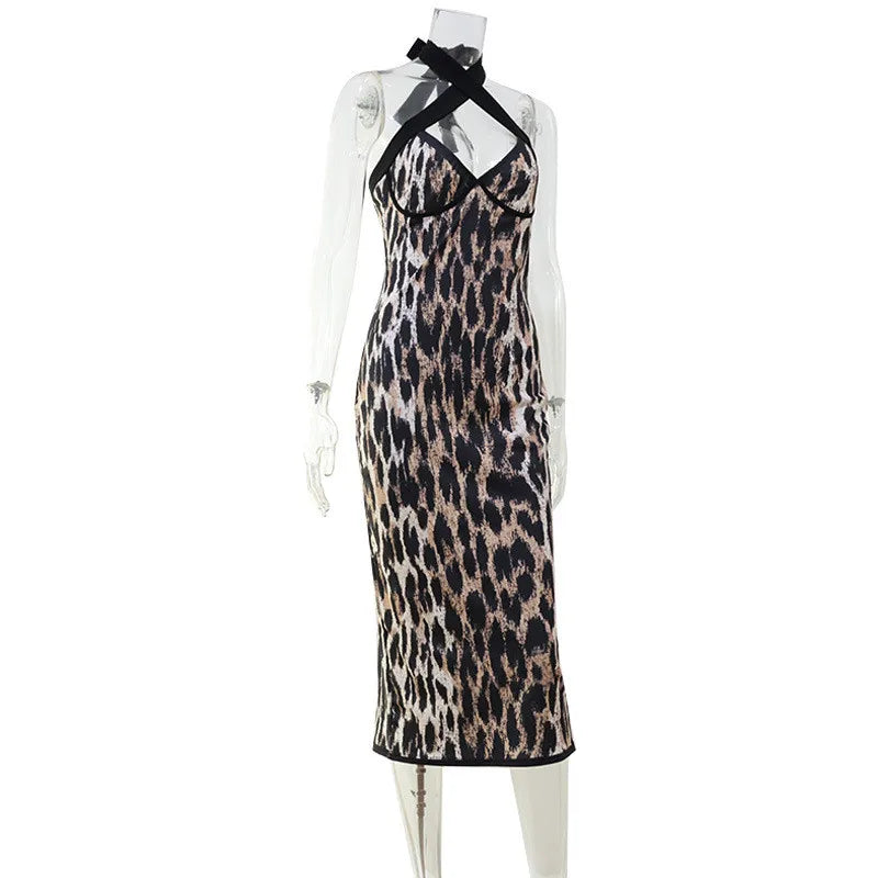 Embrace your wild side in the Forbidden Dominance Midi Dress. This striking piece features an alluring leopard print that commands respect, crafted from a responsive polyester and spandex blend that stretches and recovers beautifully. The midi length adds an element of mystery while the bold pattern declares your unapologetic confidence. For those ready to break the rules and make an impression.