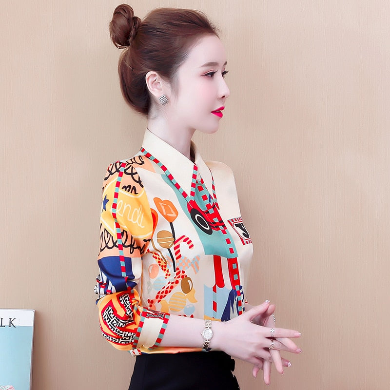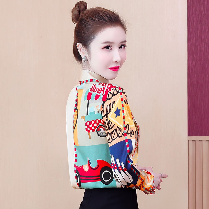 Colorful Cartoon Print Pattern Shirt with Long Sleeve and Turn Down Collar
