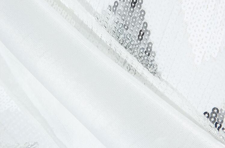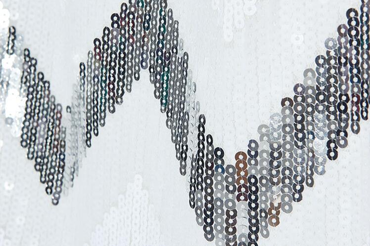 This women's mini dress is a must-have for any girl's wardrobe. This dress features a geometric pattern with sequins, making it perfect for any occasion. The short sleeve and o-neck make this dress perfect for summer and spring.