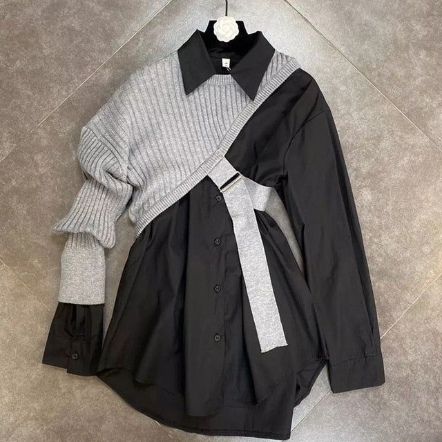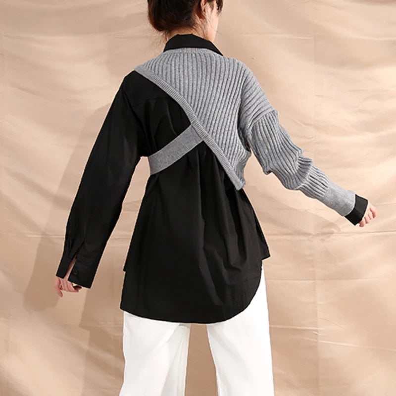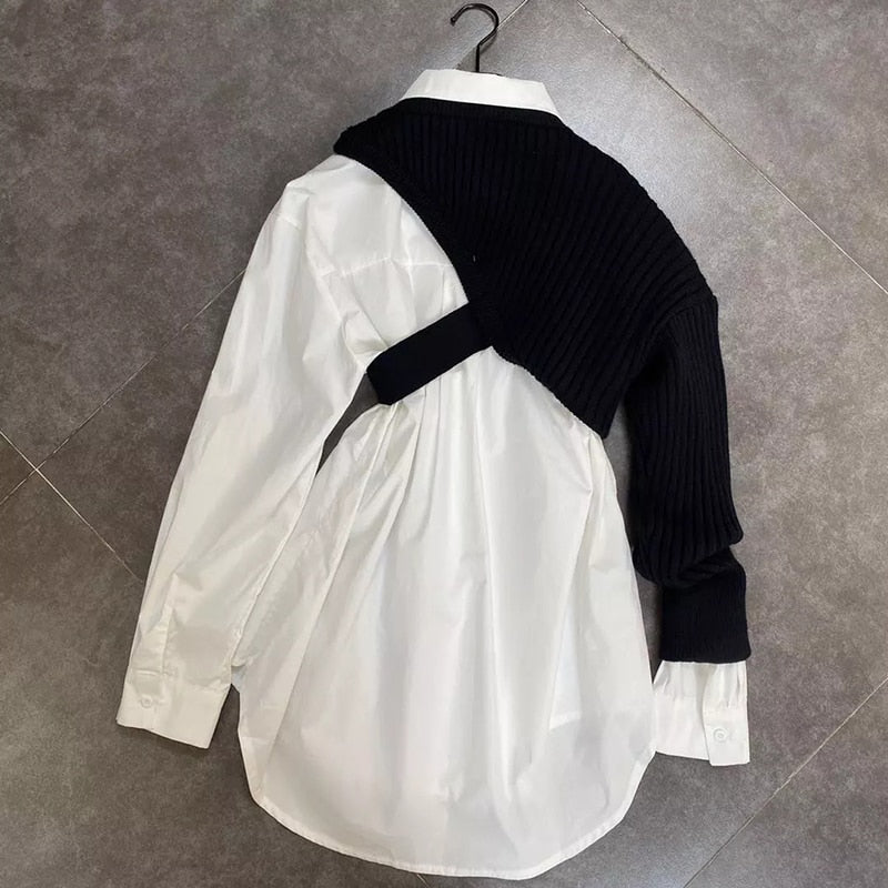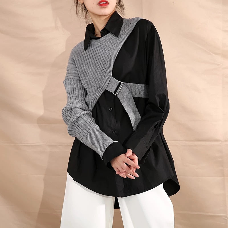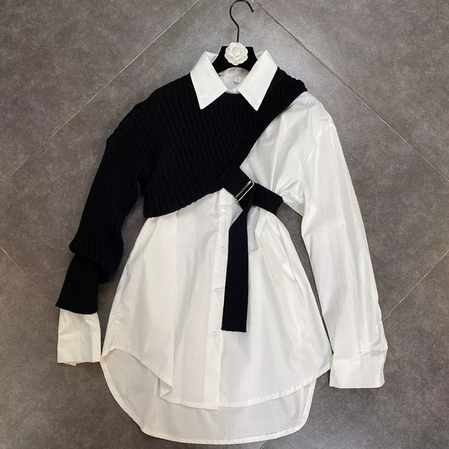 Long-Sleeved Turn-Down Collar Solid Single-Breasted Shirt with Vest Decoration