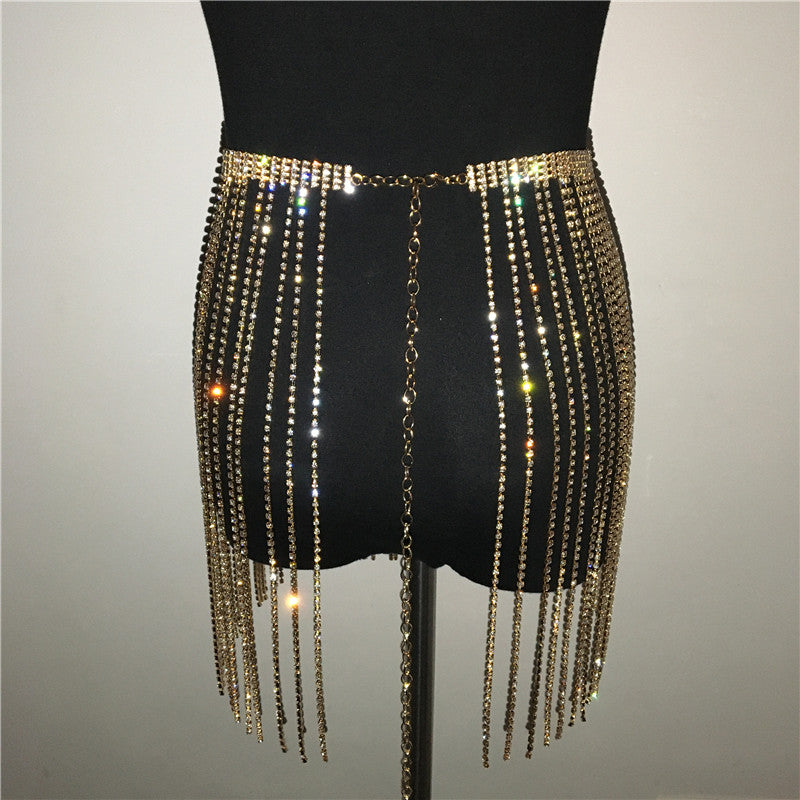 This waist jewelry is made of a rhinestone. Come in Tassel design, this jewelry is perfect to wear for a party. It is available in 2 colors. Silver and gold. It's adjustable and easy to wear with clasp closure.