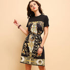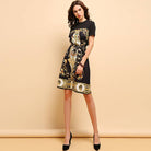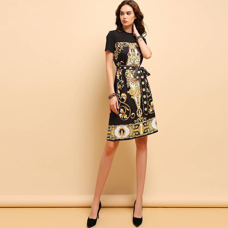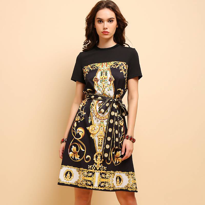 Cotton Polyester Print Pattern Sequined Decoration Short Sleeve Mini Dress