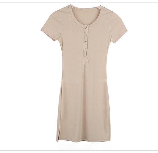 Short-Sleeved Mini Dress with Button Closure and Cotton Material