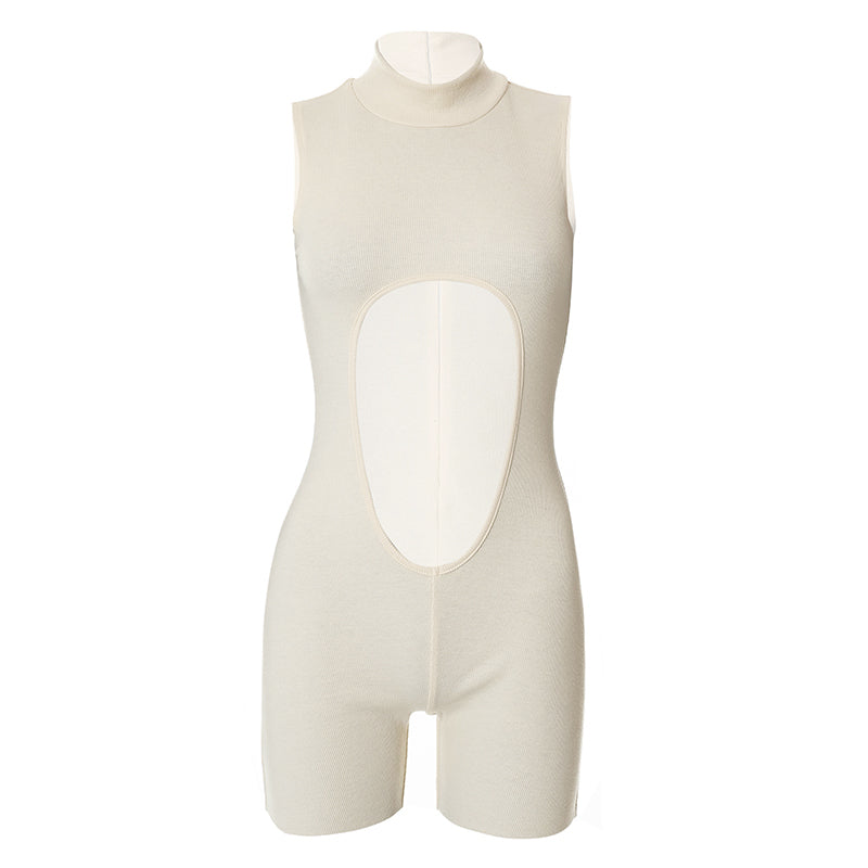 Get your chic on with this flattering women's romper. Made of polyester, this romper features a sleeveless design with an o-neck and a hollow-out design in the front. The romper is available in a solid color, so you can wear it with any outfit. Pair it with a blazer and heels for a formal look or wear it with sneakers for a more casual feel.